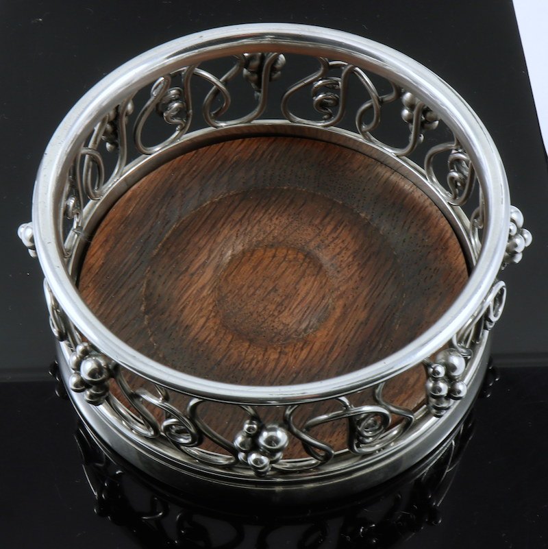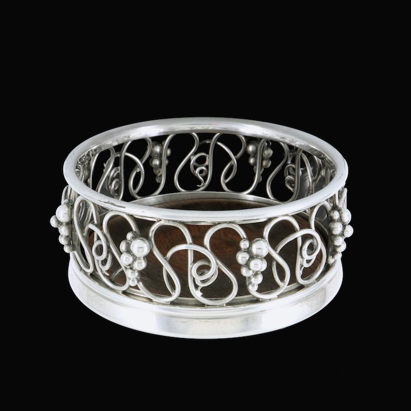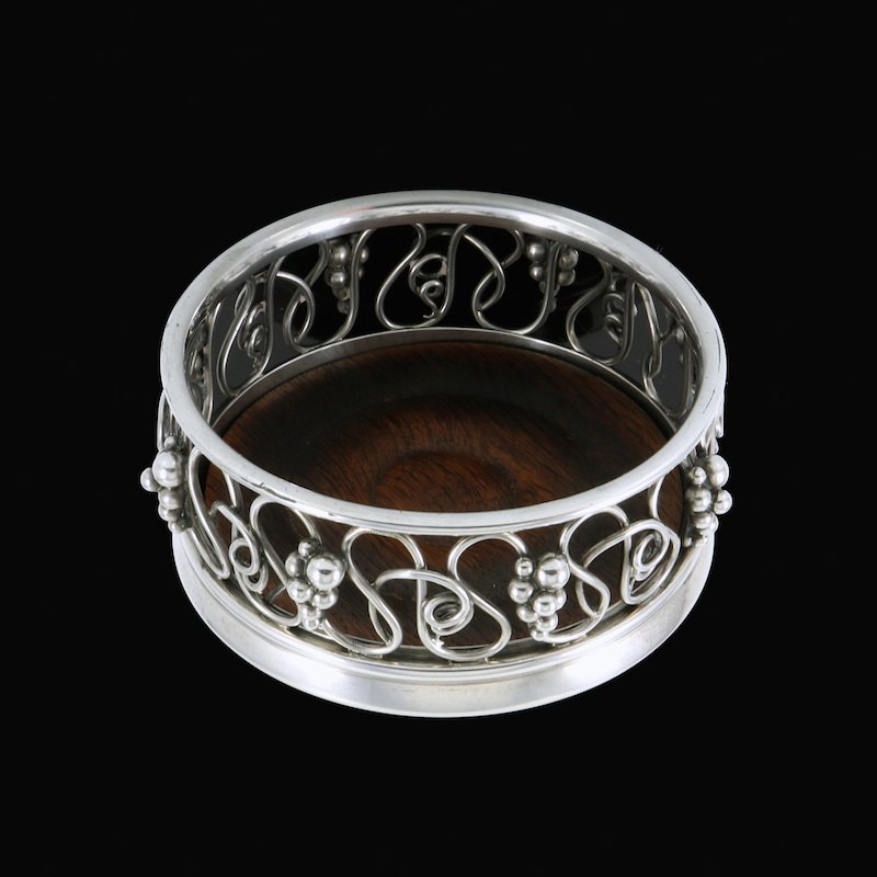 Evald Nielsen 1879-1958. Silver Wine Coaster with Grapes Motif.