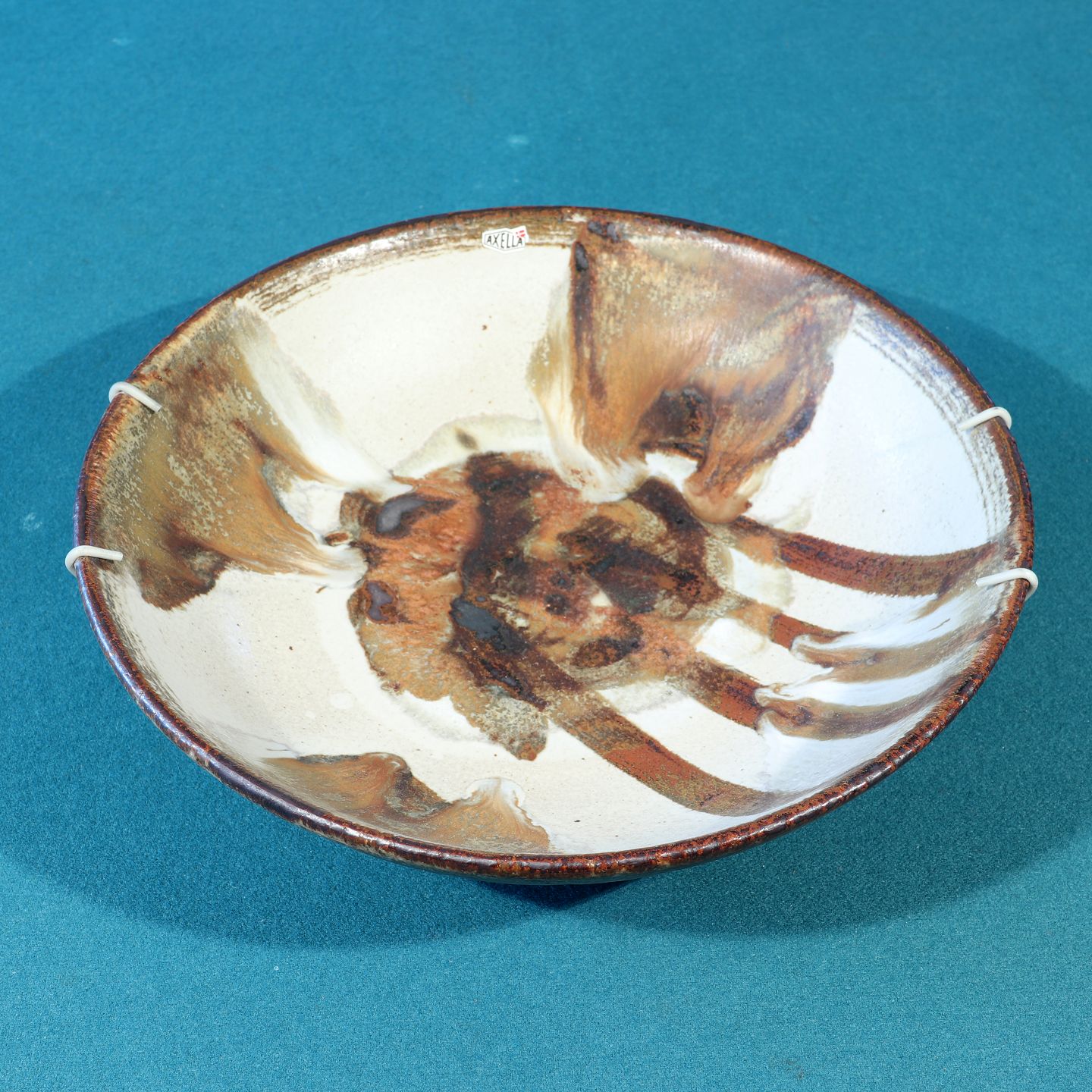 Fad i glaseret stentøj produceret hos Axella, højde 9 cm, diameter 35 cm, 1970-1980