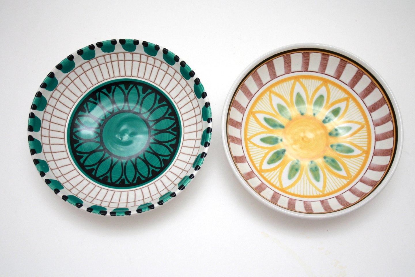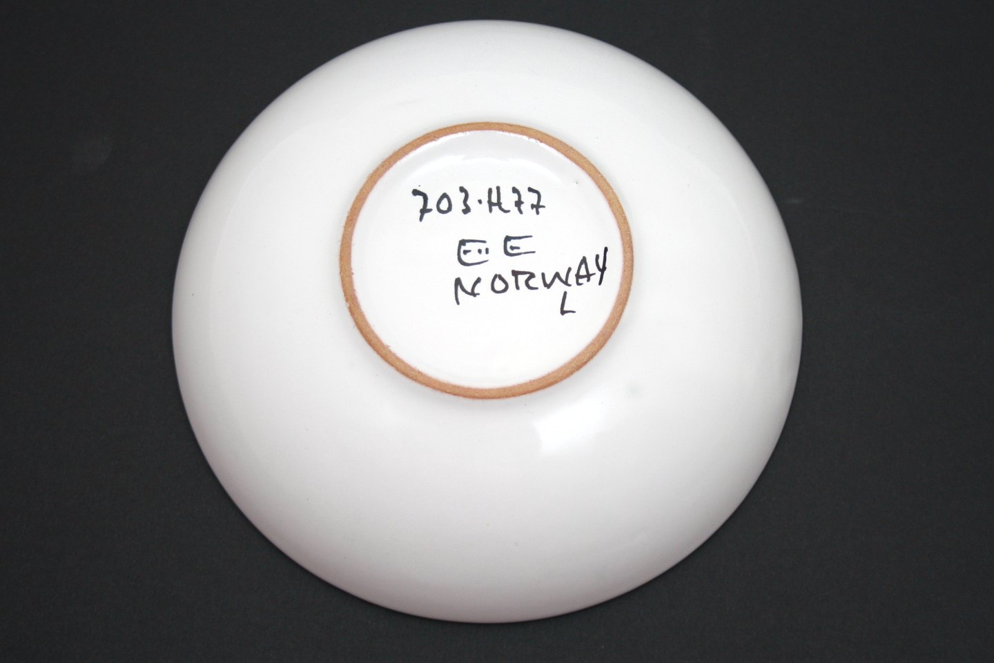 Elle Keramikk, Norway eksisterede fra 1942-1967, nær Oslo. Fantastisk smukke skåle til ymer eller salat. Skålene er håndmalede af forskellige kunstnere. Virkelig flot stand. Højde ca. 4 cm. Diameter 15,5 cm. Pris: 250 kr. stk.