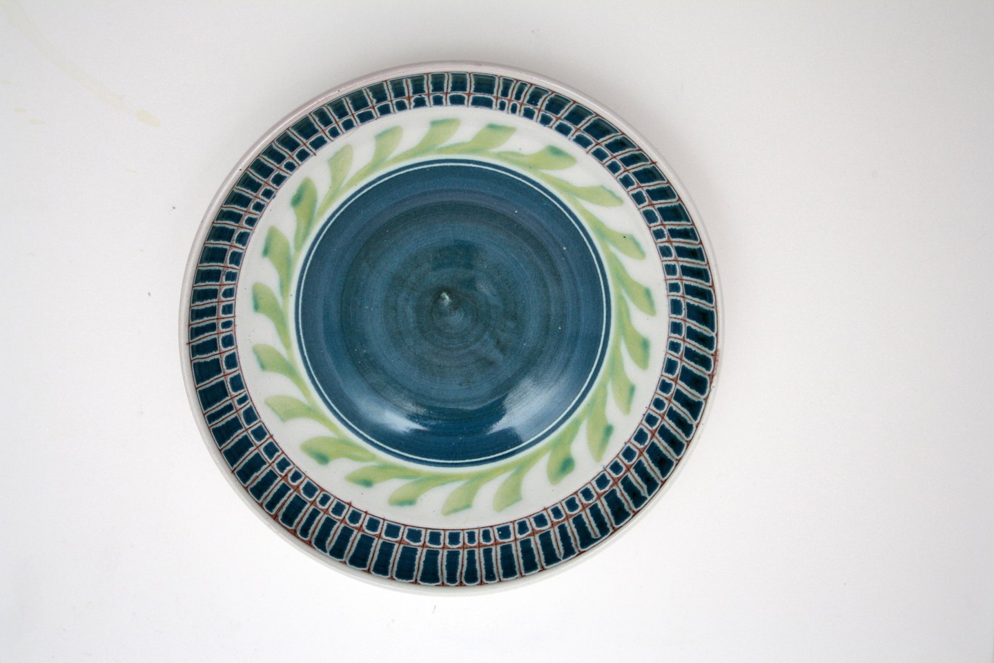 Tv. Ternet bund blågrøn kant, signatur FA.
