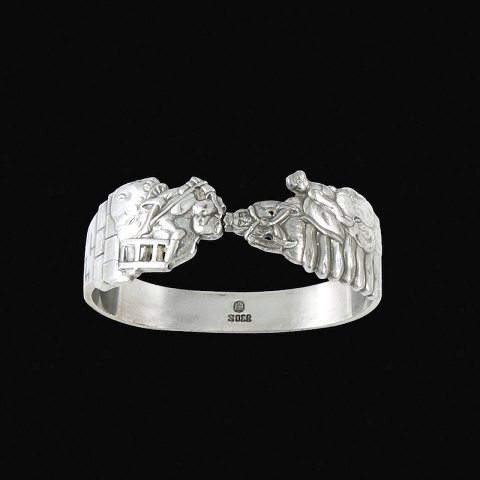 Servietring i sølv med motiv fra H.C. Andersens eventyr.