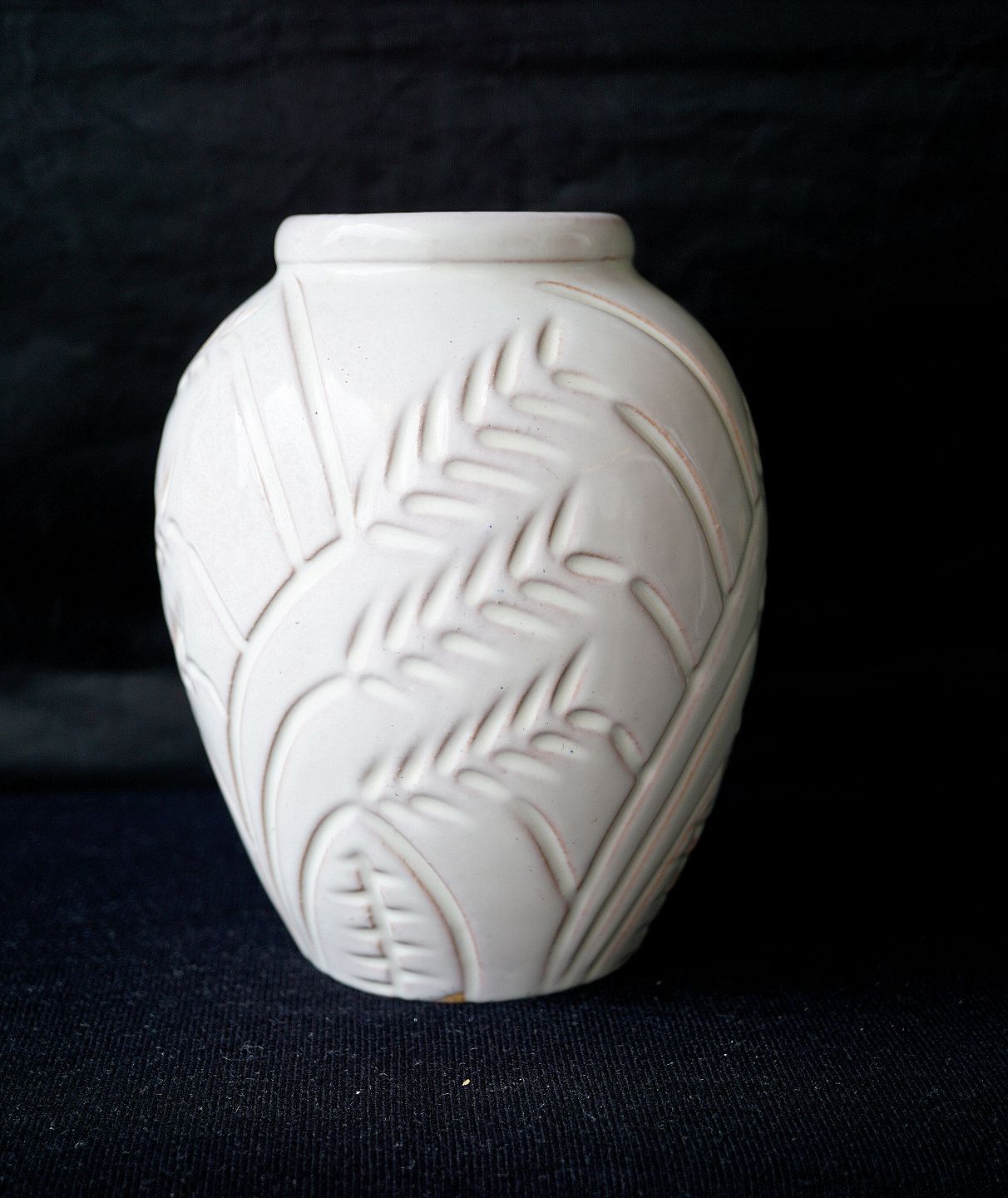 Hvidglaseret keramikvase med mønster