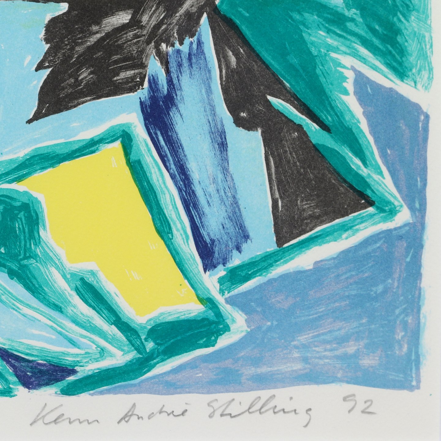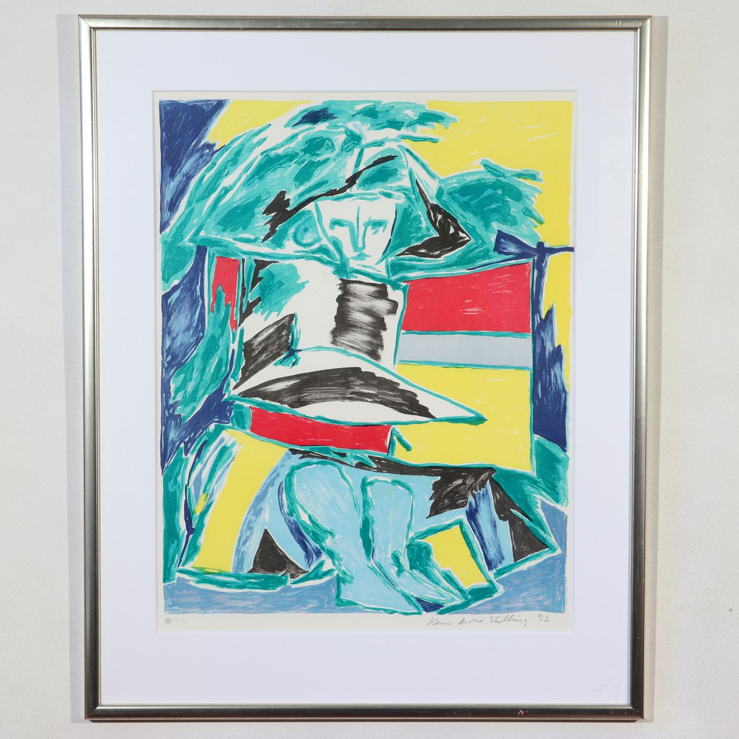 Kenn Andre Stilling (f. 1945) litografi i farver signeret med blyant Kenn Andre Stilling 1992 nr. 78/180 rammemål højde 91,5 cm, bredde 73 cm