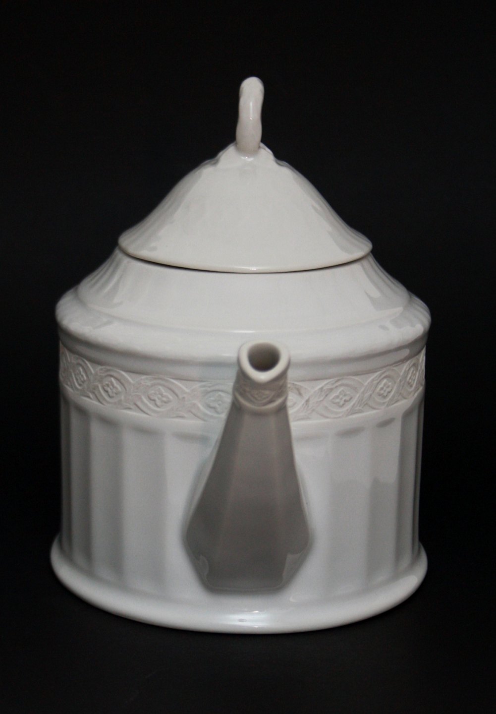 Royal Copenhagen, Hvid Vifte, Tekande. Designet af Arnold Krog i 1909. Formnr. 143. I. sortering. Længde 27 cm. Højde 16,5 cm. Pris: 1200 kr.