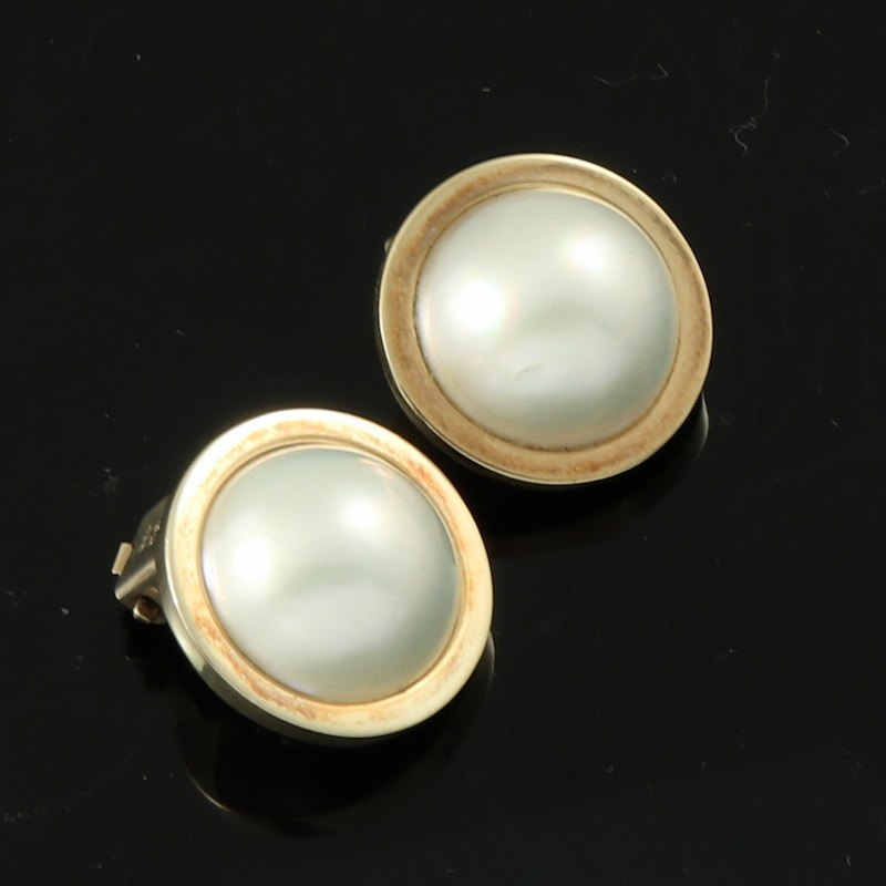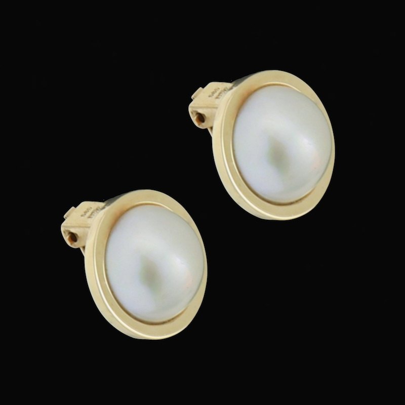 Bent Sørensen. Øreklips i 14k guld med perler.