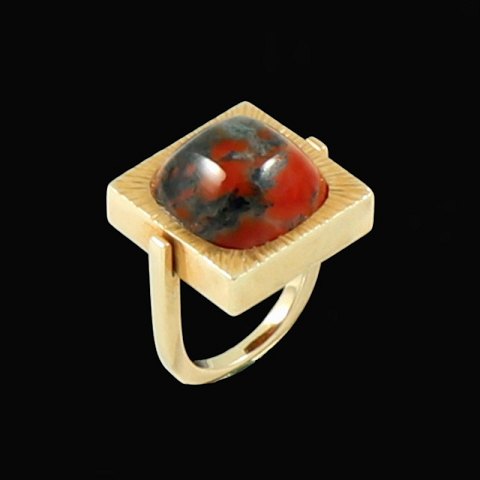 Johan Torp. Ring i 14k guld med mosagat.