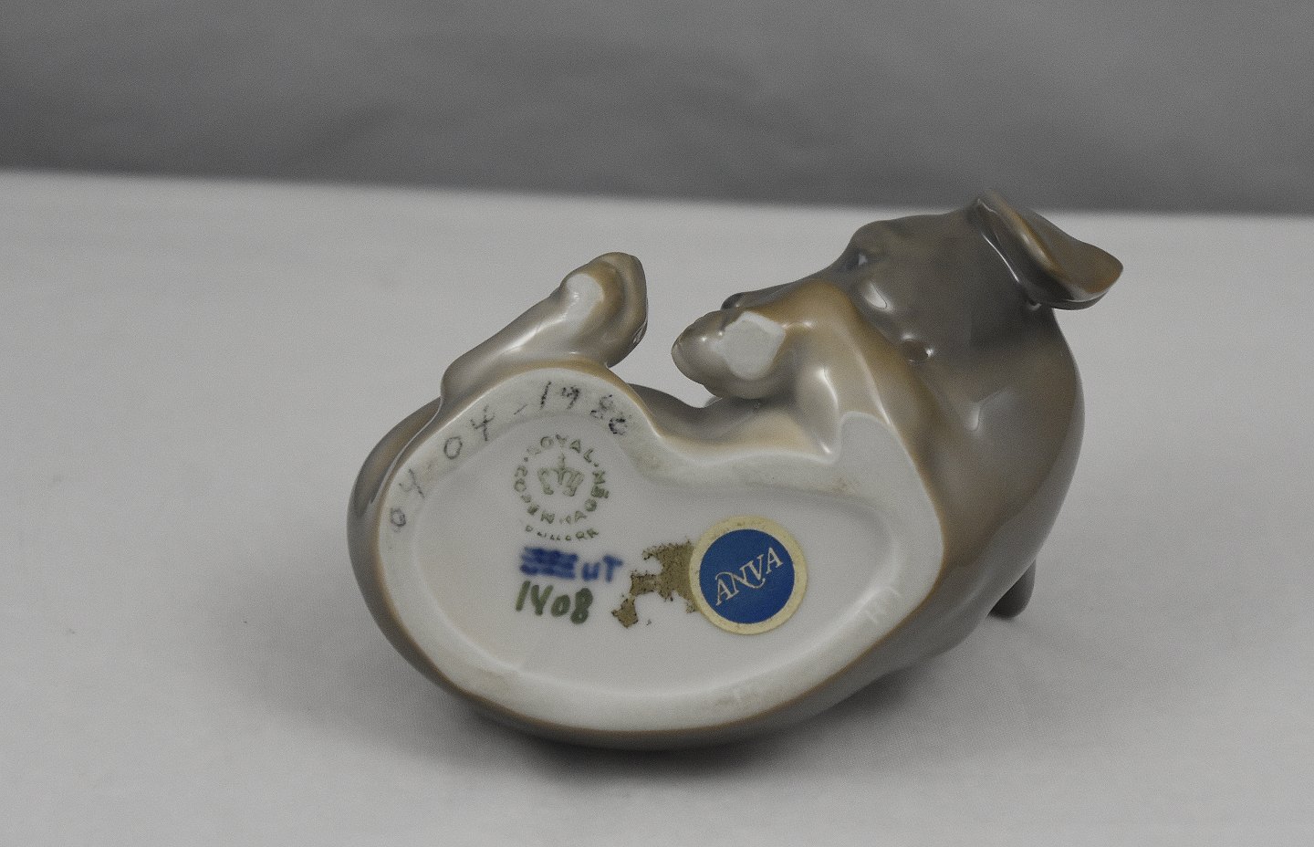 Royal Copenhagen figur af Liggende, korthåret gravhund nr. 1408