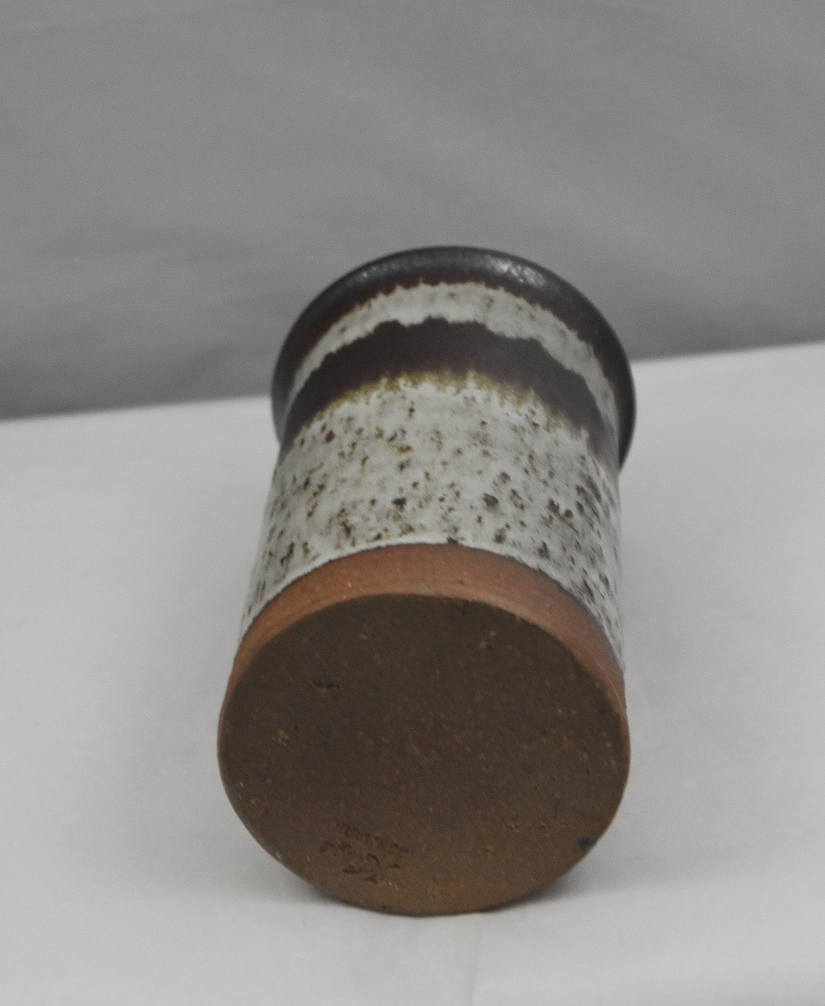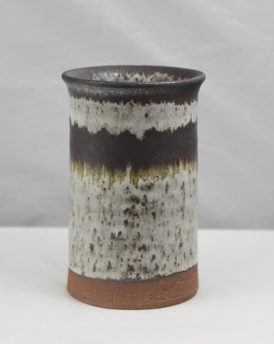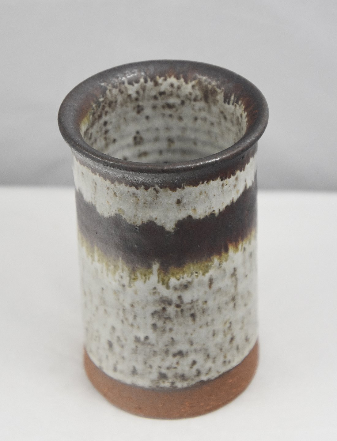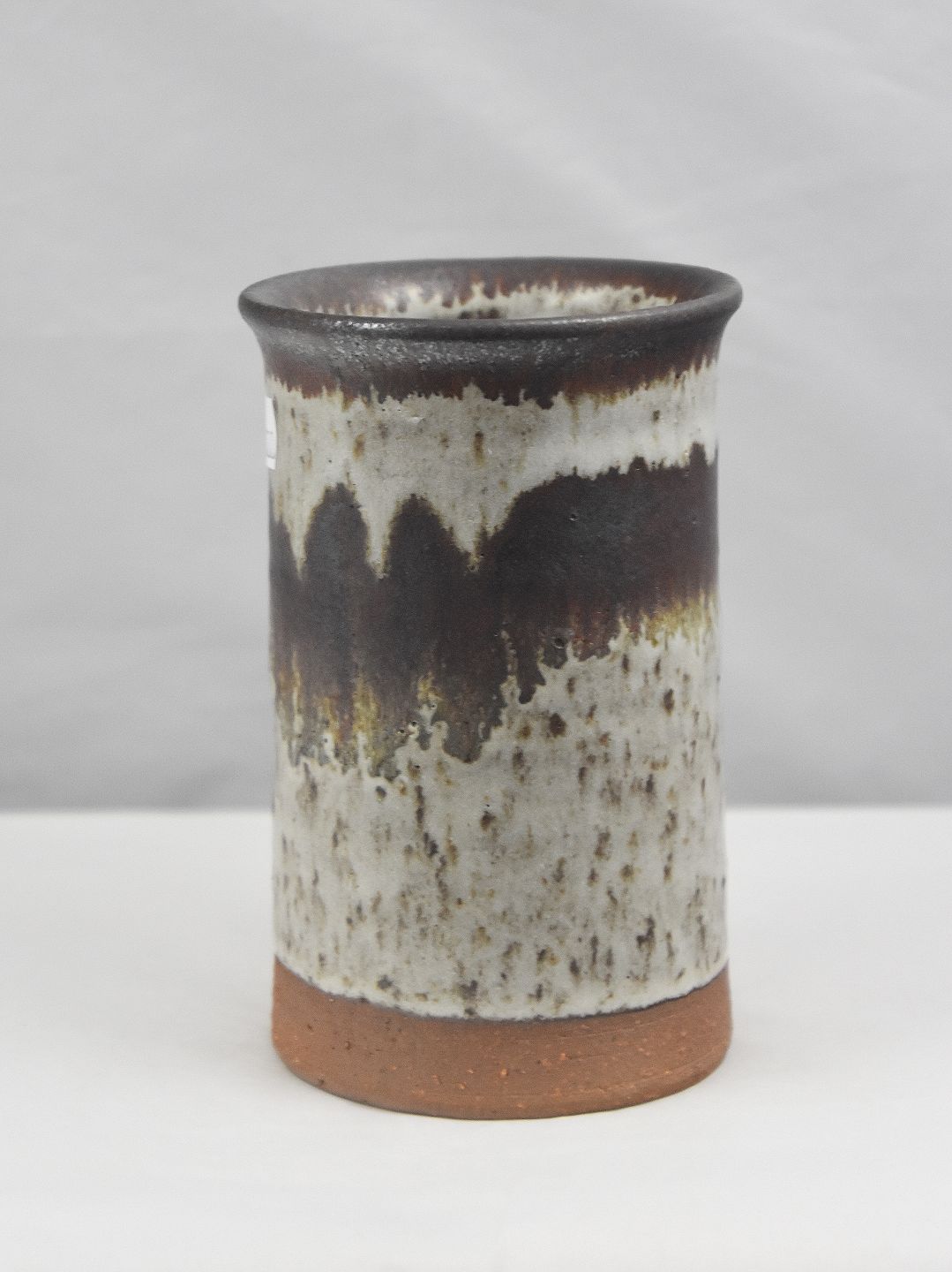 Vase, i keramik, med brunligt glasur til det helt hvide