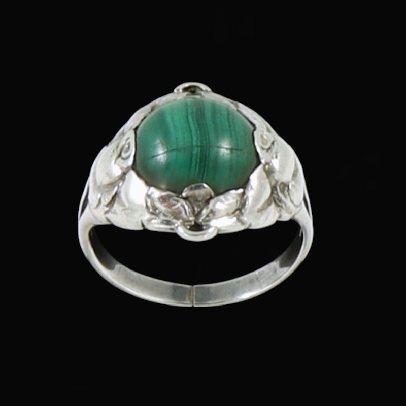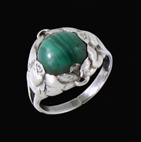 Evald Nielsen 1879 - 1958. Art Nouveau Sterling Silver Ring with Malachite.
