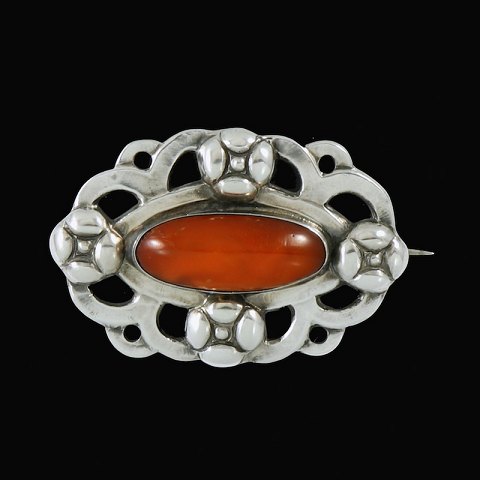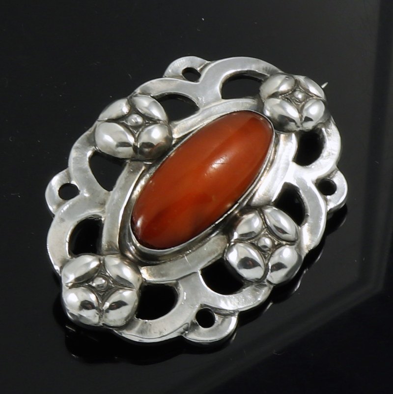 Carl M. Cohr. Skønvirke Broche i Sølv med rav.