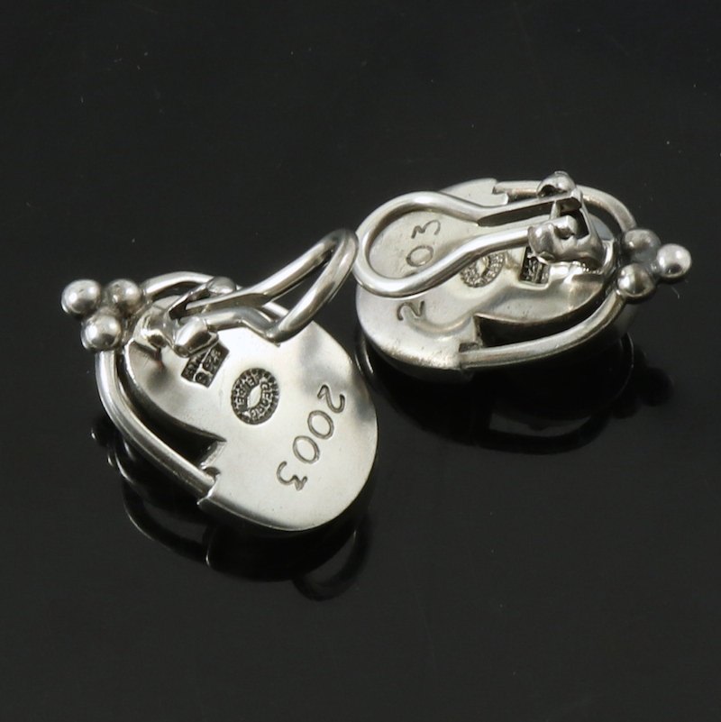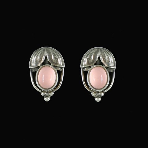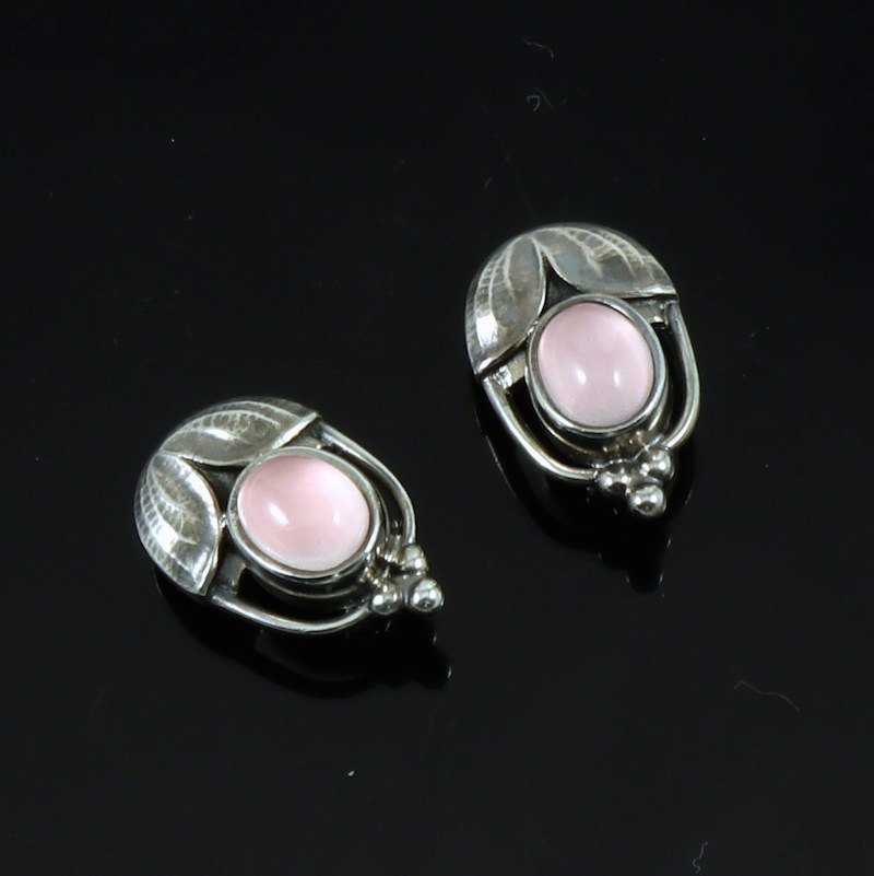 Georg Jensen. Sterling Silver Ear Clips Of The Year 2003 with Rose Quartz - Heritage