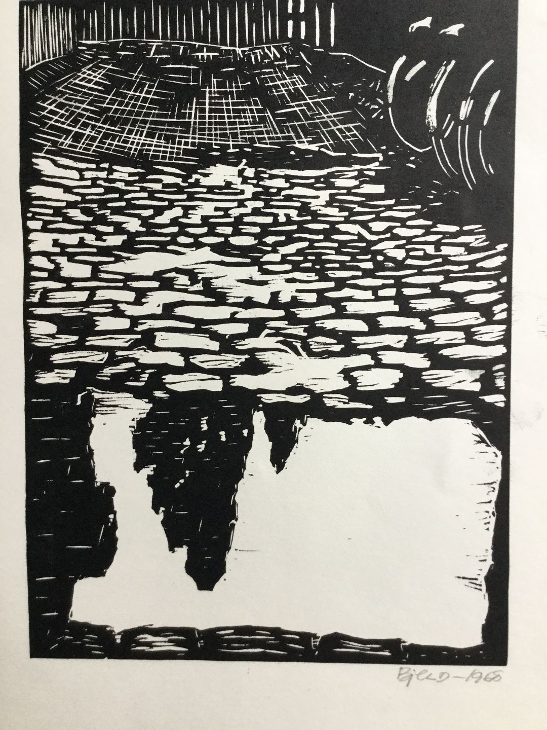 Linoleumssnit af Sigurd Bjeld 1968 - Komposition.