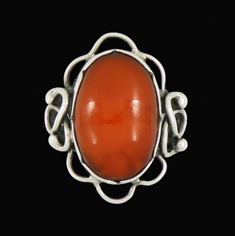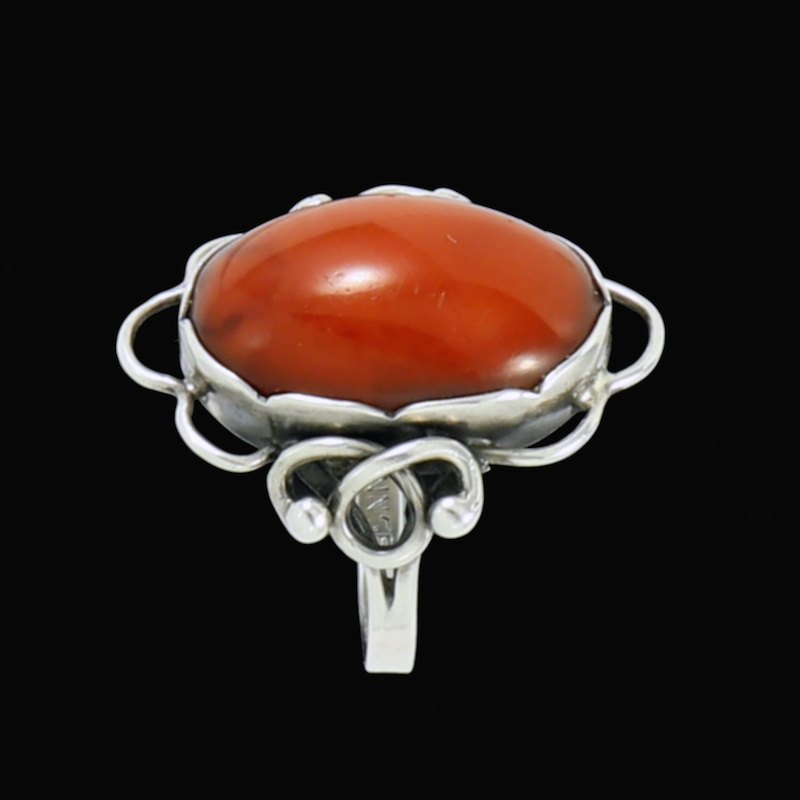 R. Rasmussen. Skønvirke ring i sølv med rav.