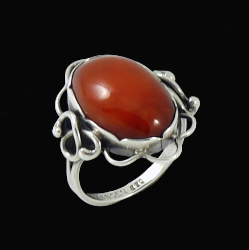 Ulrich Johannsen. Skønvirke ring i sølv med rav.