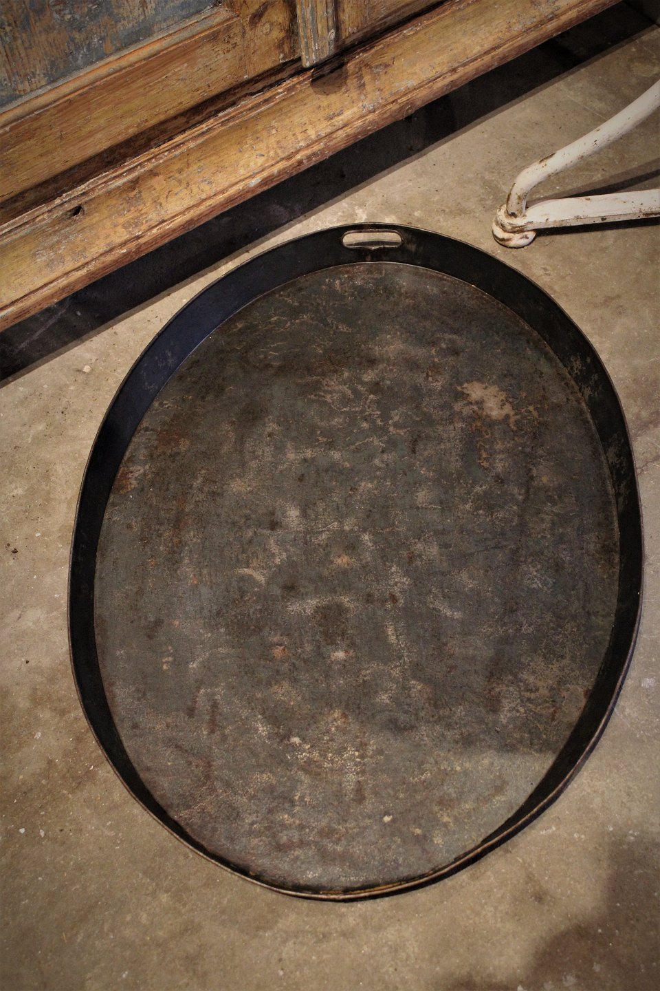 Old raw French oval tray in trimmed iron and with a super nice patina.