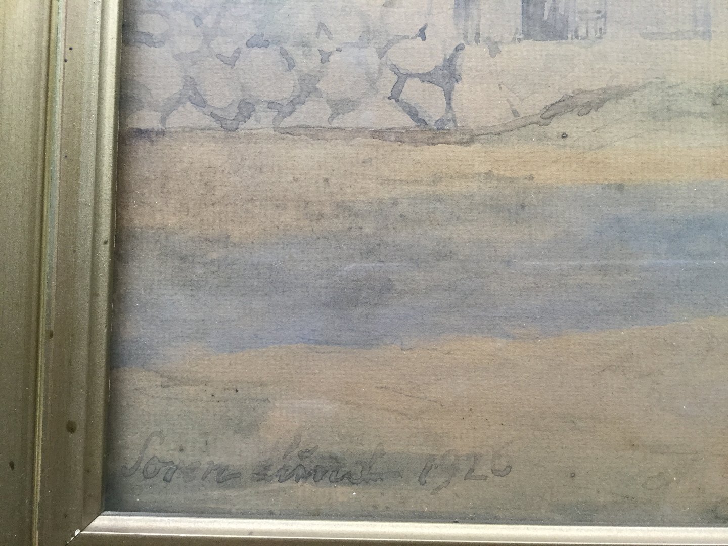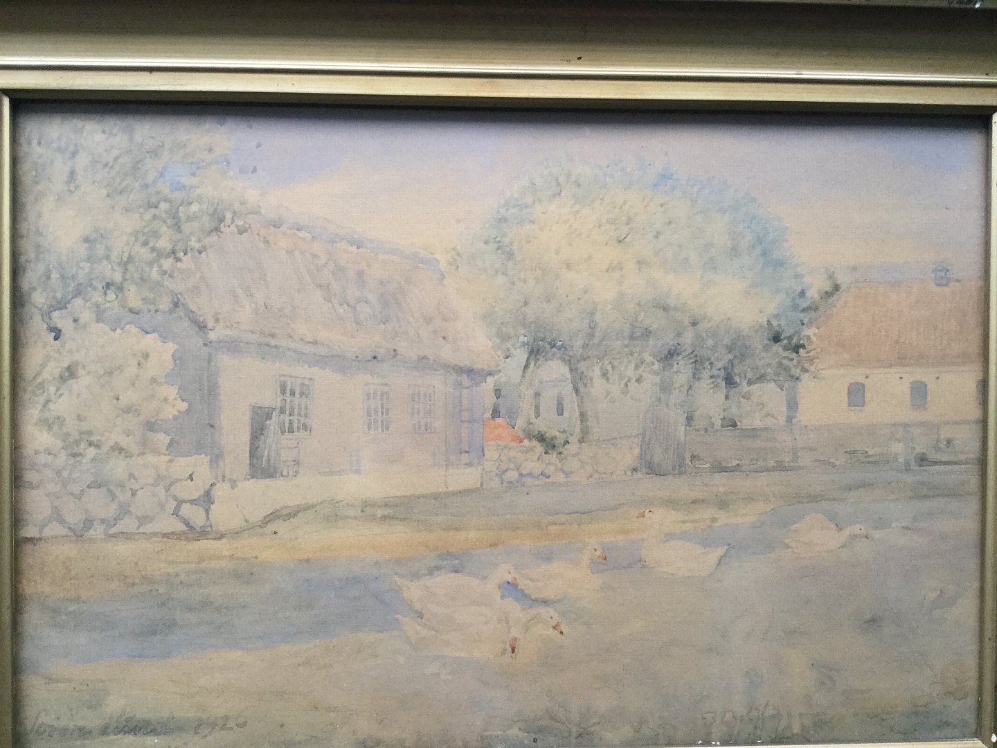Gårdeksteriør med ænder på gårdsplads 1926.