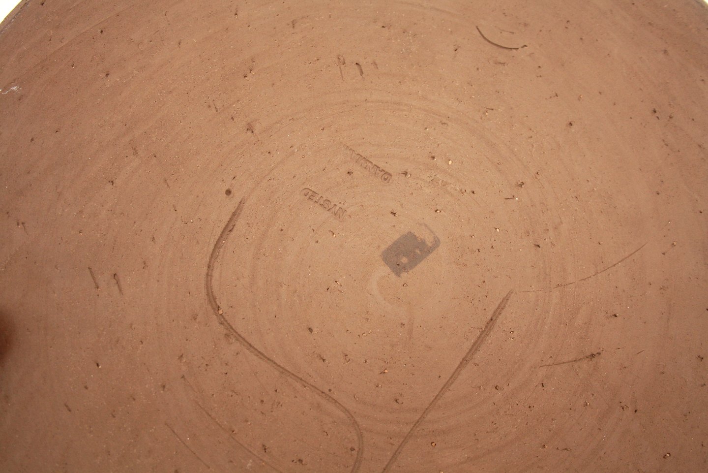 Nysted keramik, Fad med orange glasur indvendig. Fra 1970'erne. Diameter 27 cm. Højde 4,5 cm. Pris: 450 kr.