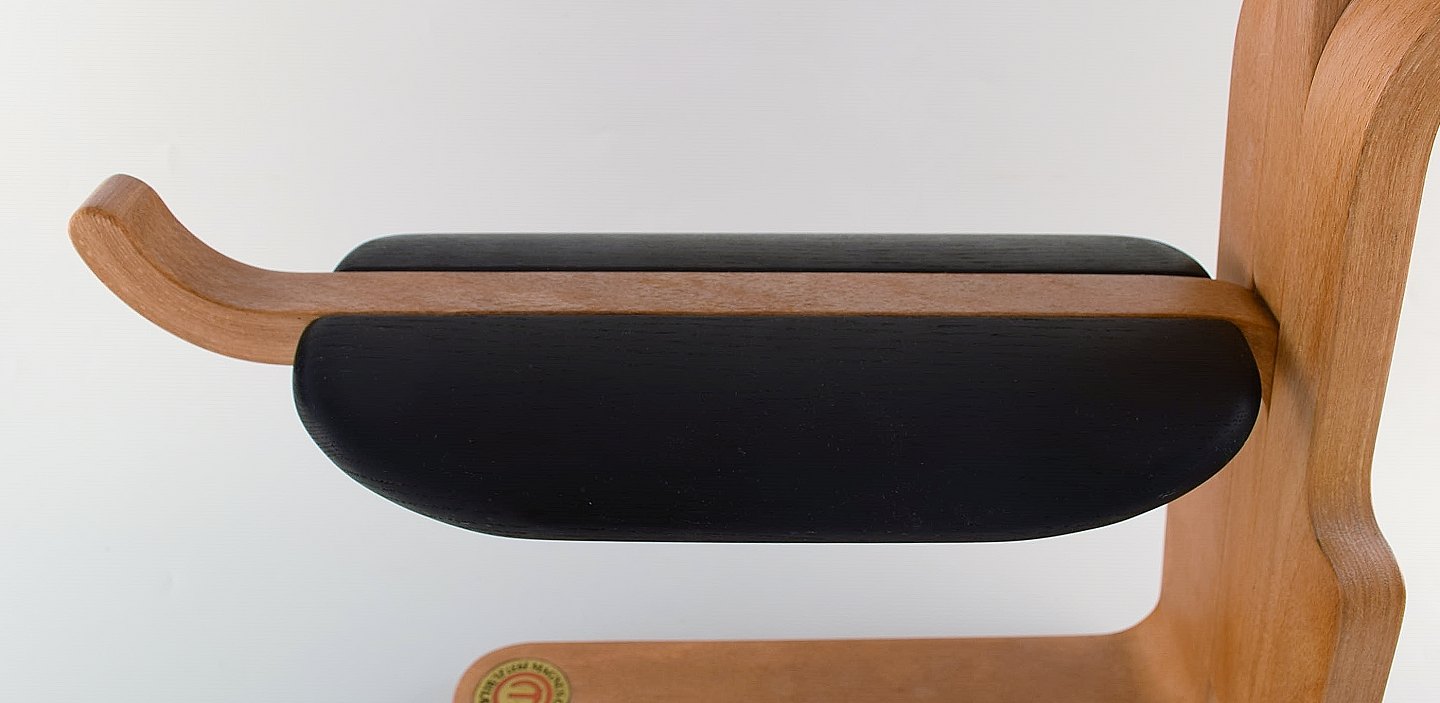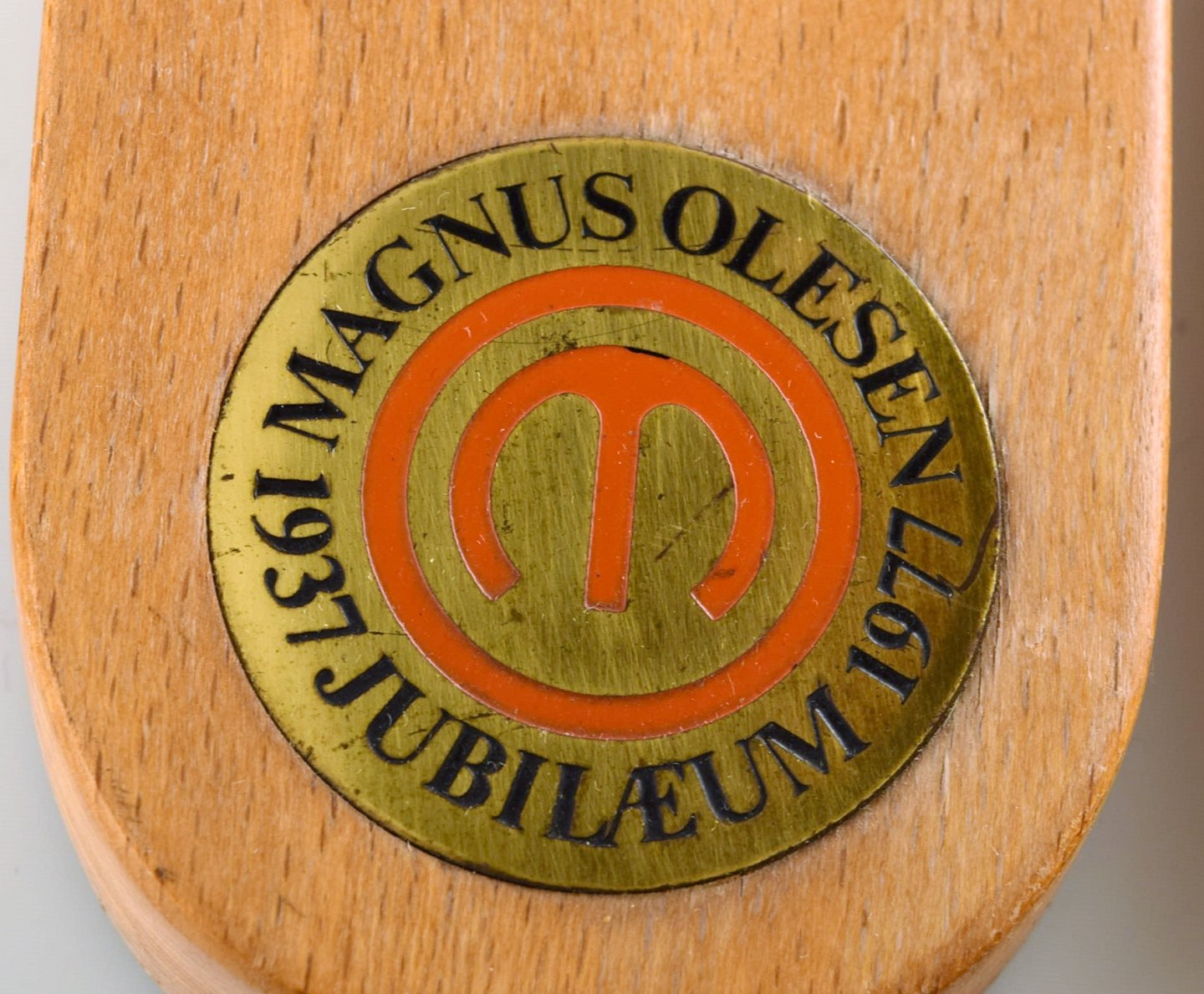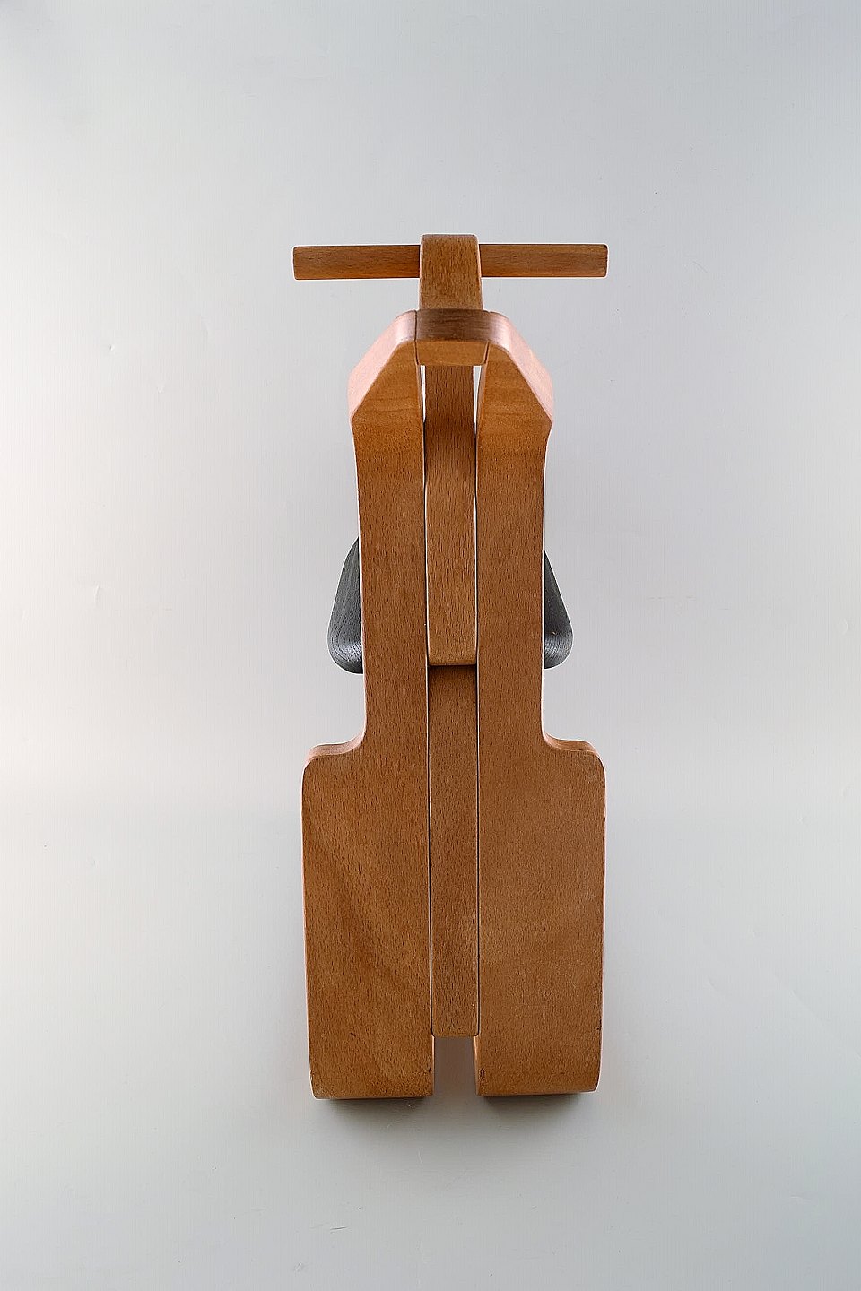Magnus Olesen. 40-års jubilæum gyngehest i elmetræ. Dansk design, dateret 1977.
