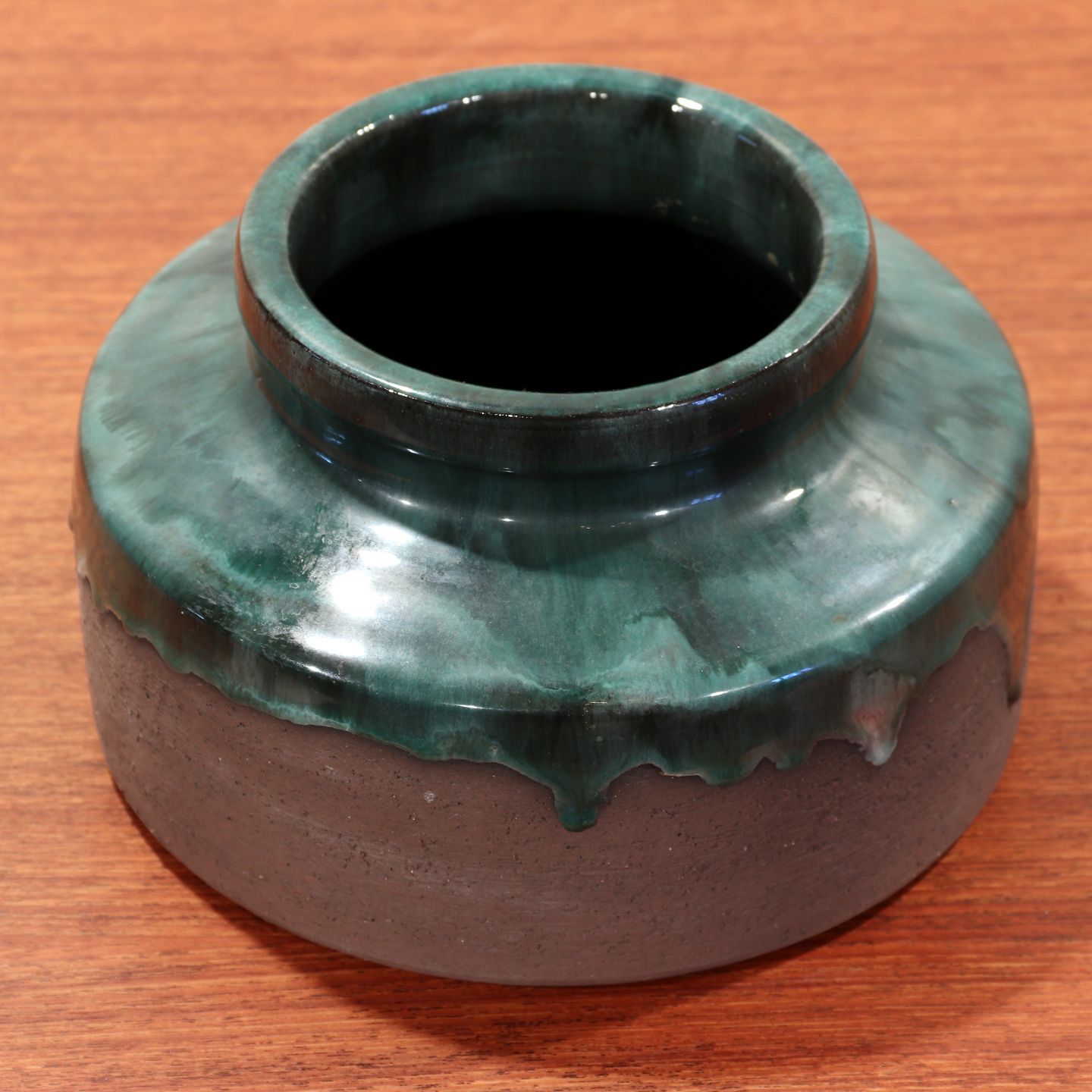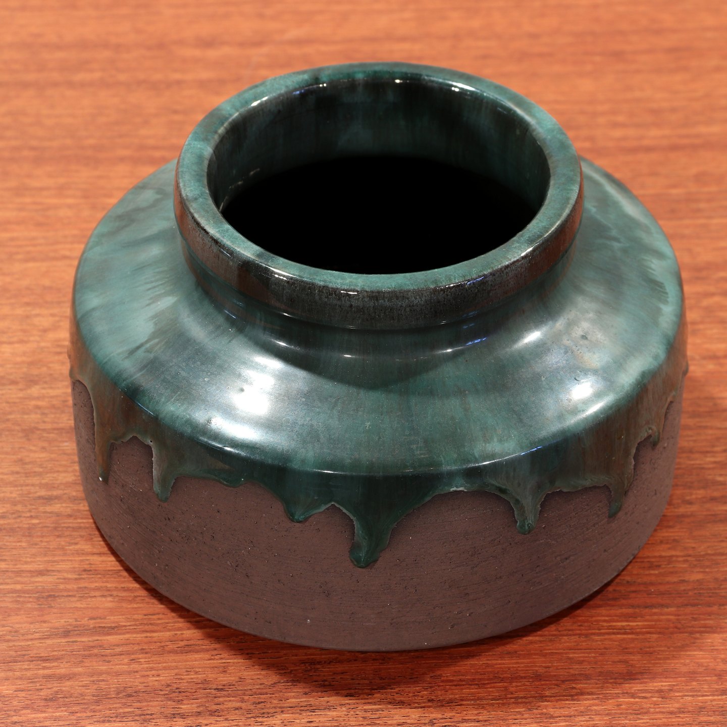 Vase i stentøj med løbeglasur utydeligt signeret i bunden.