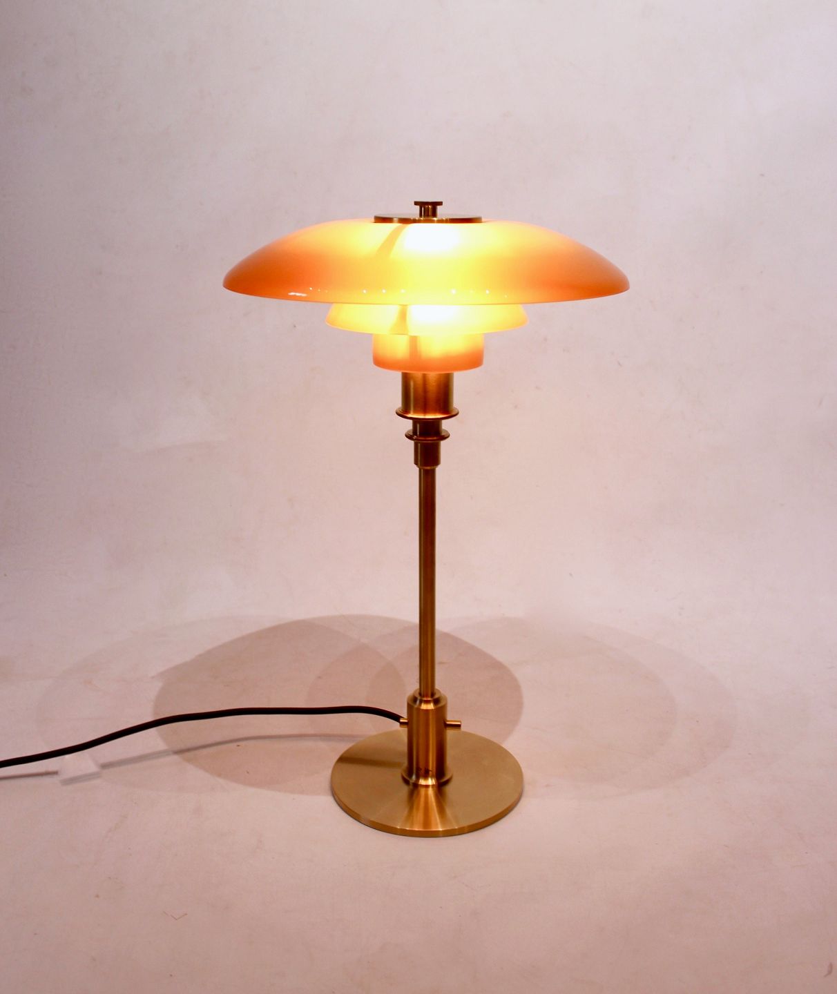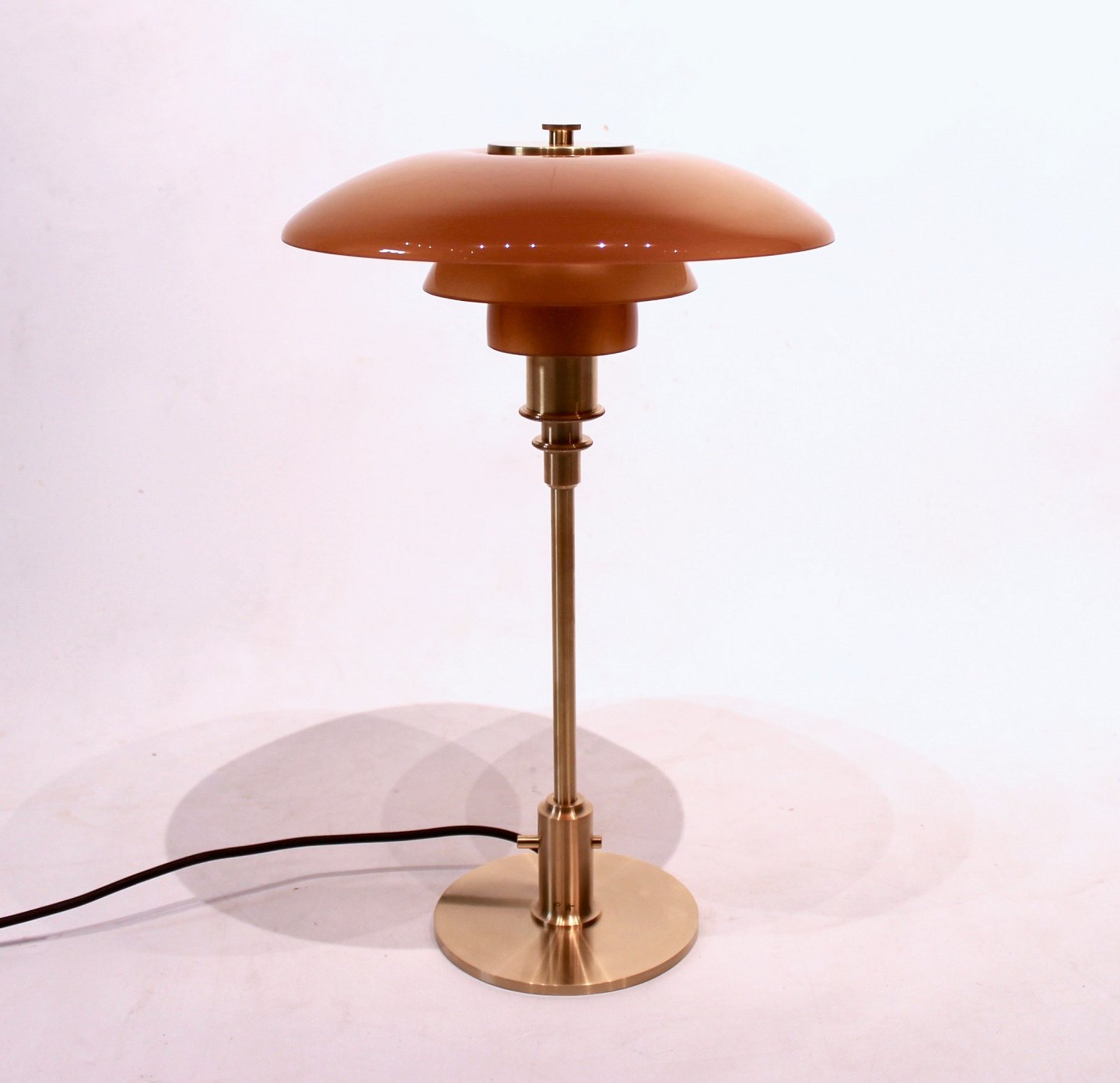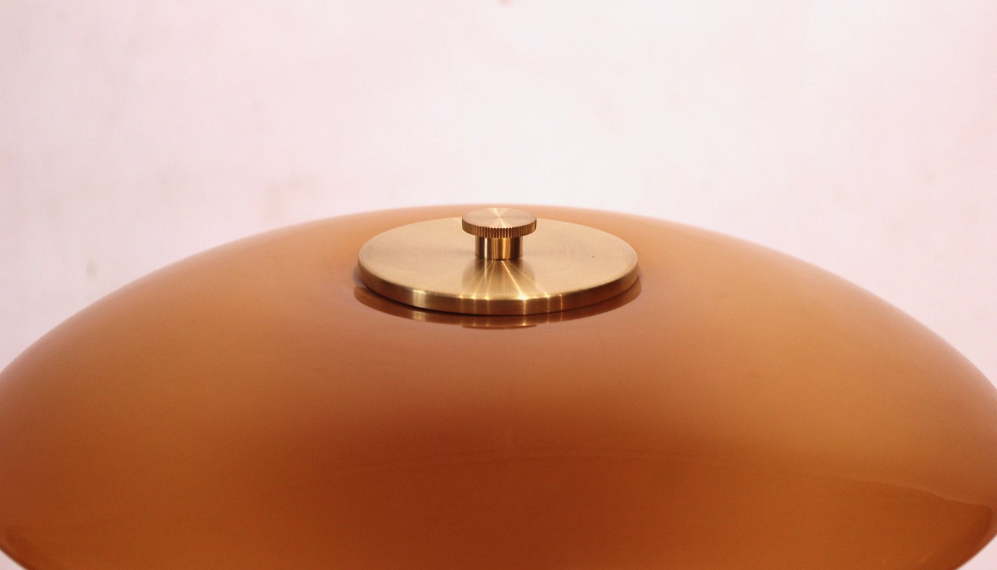 Limited edition 2018 PH 3/2 bordlampe med stel af messing og rav farvede skærme af Poul Henningsen og Louis Poulsen. Lampen er i meget flot stand.