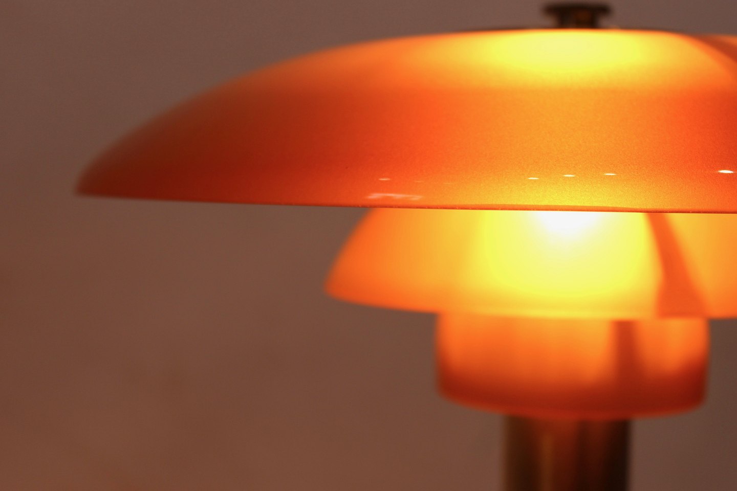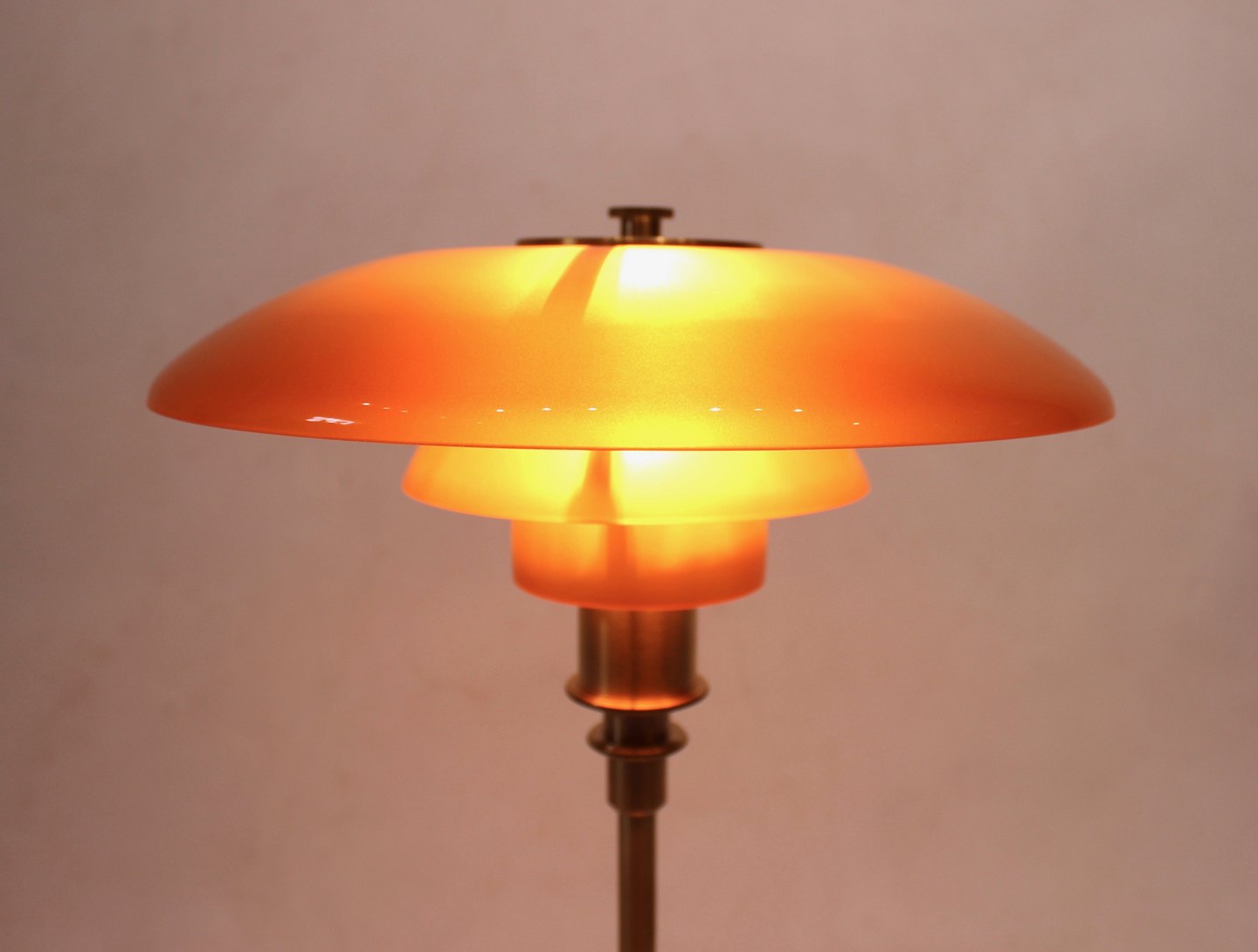 PH bordlampe i modellen 3/2. Lampen er lavet med et stel af messing og rav farvede skærme. Det er en Limited edition som kun blev solgt i en kort periode i 2018. lampen er designet af Poul Henningsen og fremstillet af Louis Poulsen. Lampen står i meget flot stand.