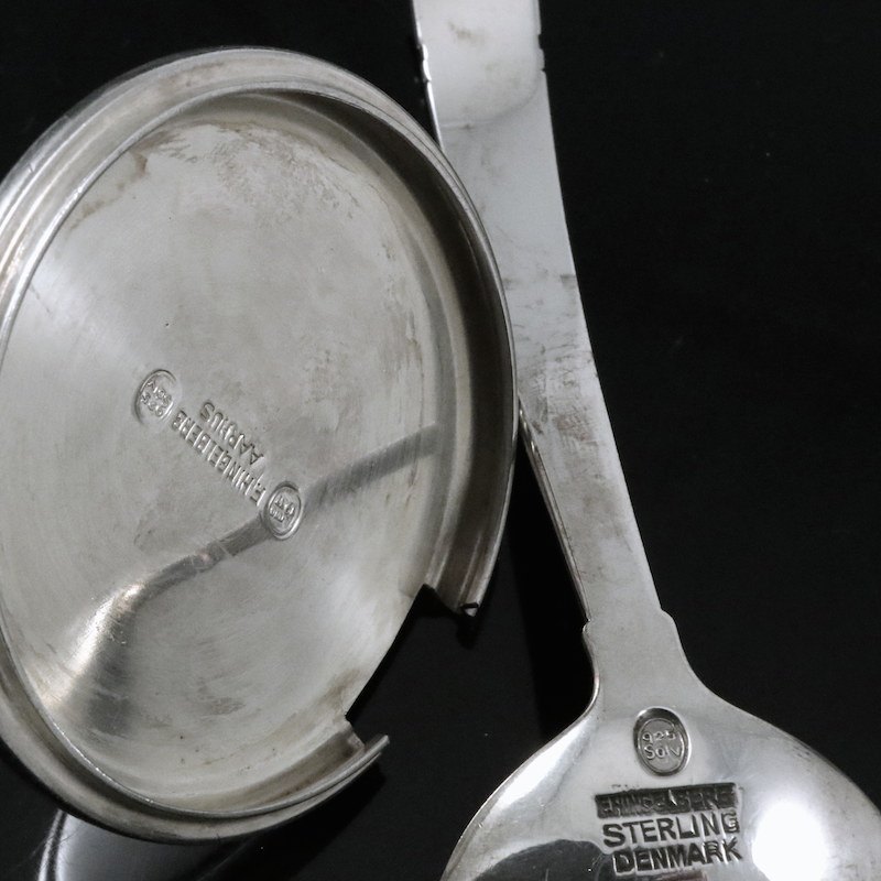 Sterling Silver Lid and Spoon designed by Svend Weihrauch (1899-1962) and crafted by F. Hingelberg in Aarhus, Denmark.