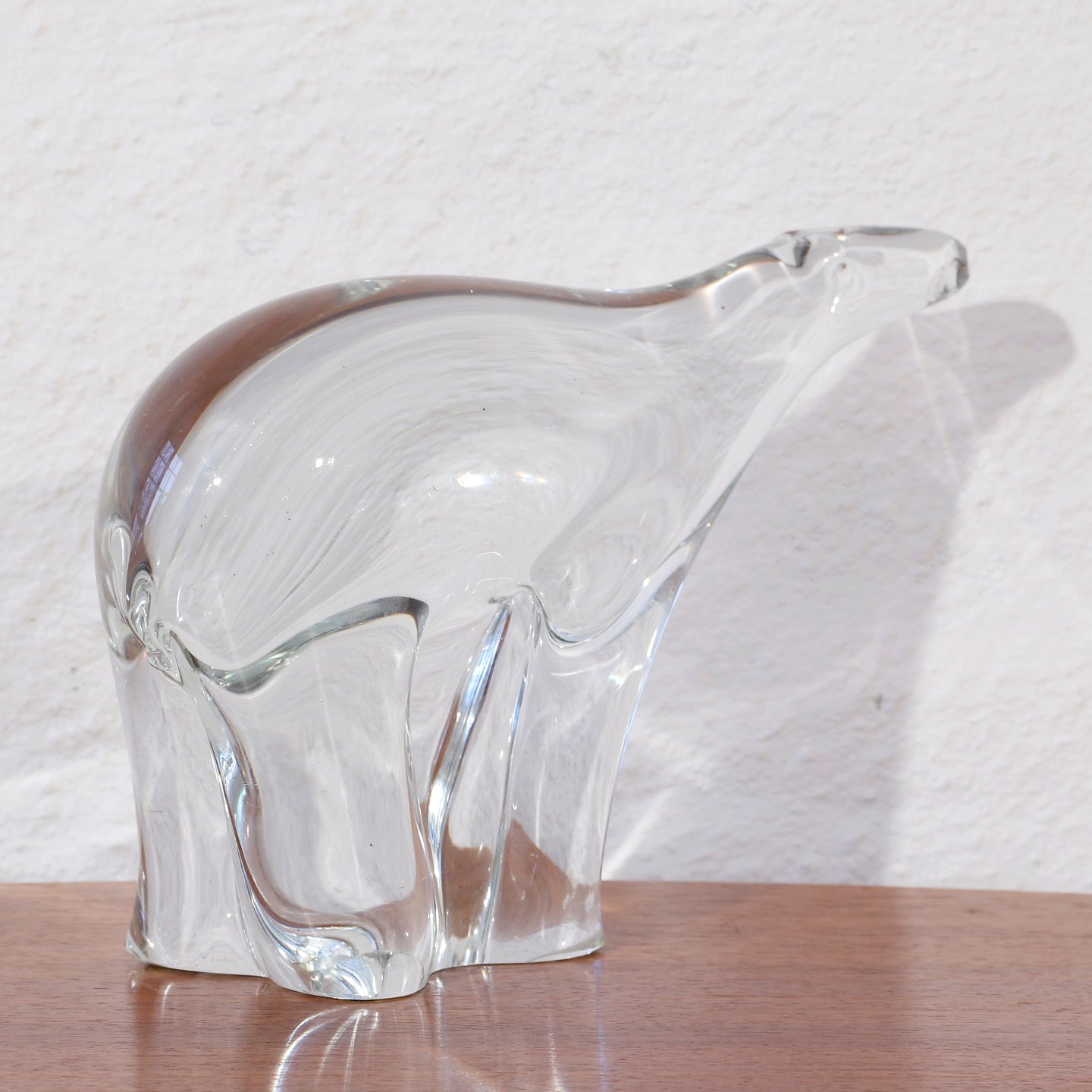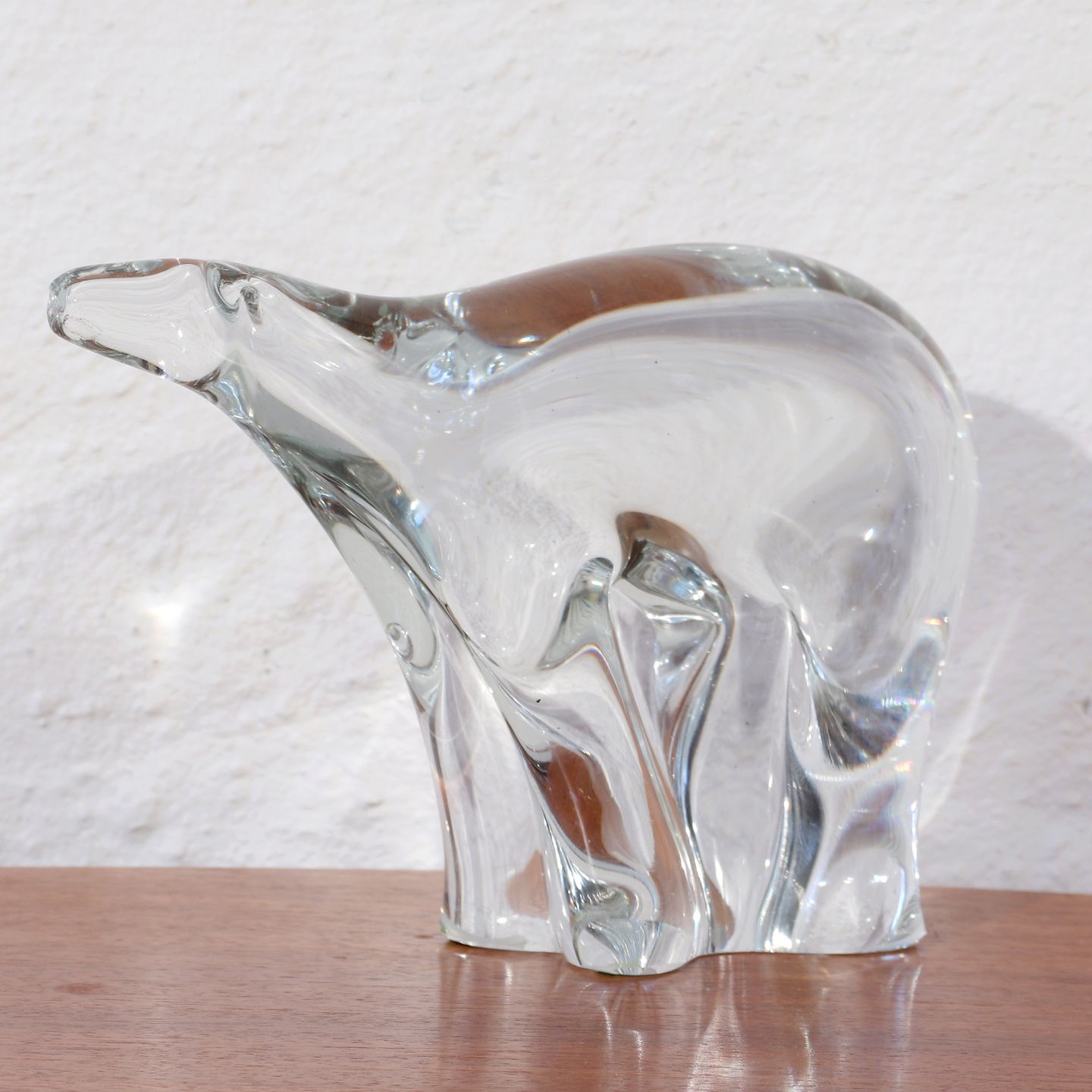 Figur af isbjørn i kunstglas lavet omkring 1970-1980.