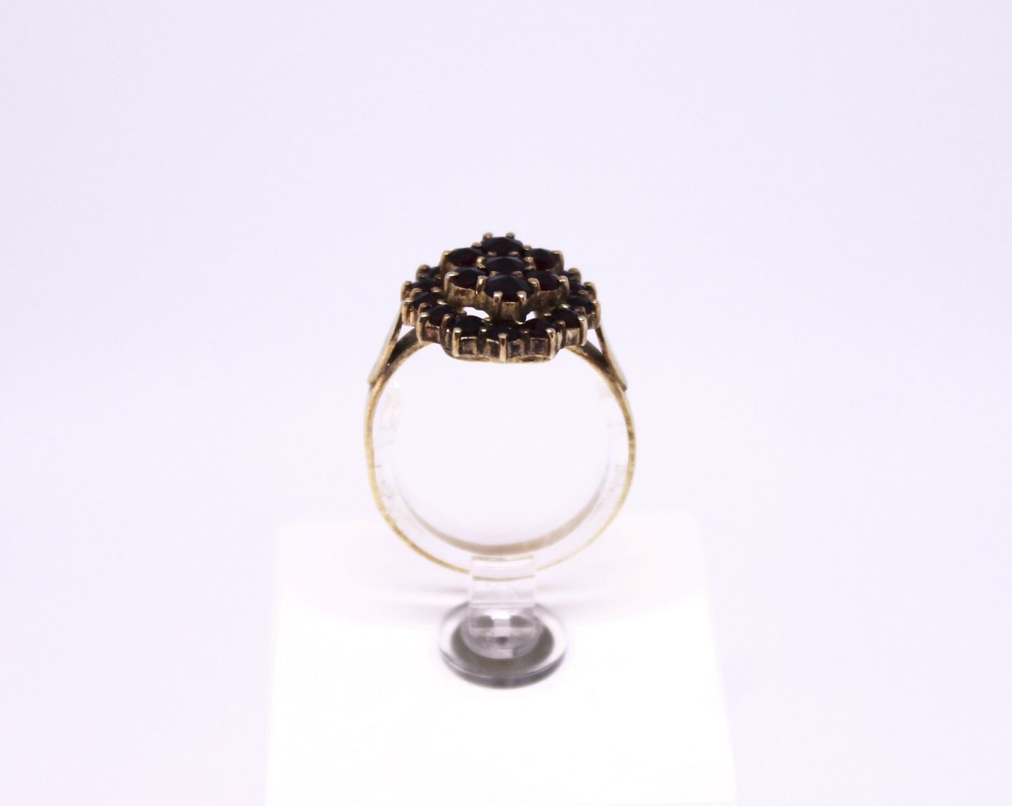 Ring af forgyldt 830 sølv dekoreret med granater og stemplet AP.
