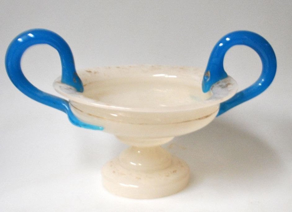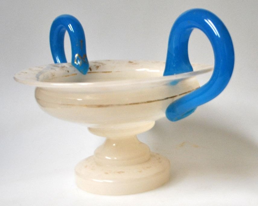 Opsats i lyst opaline glas med blå håndtag, 19. årh.