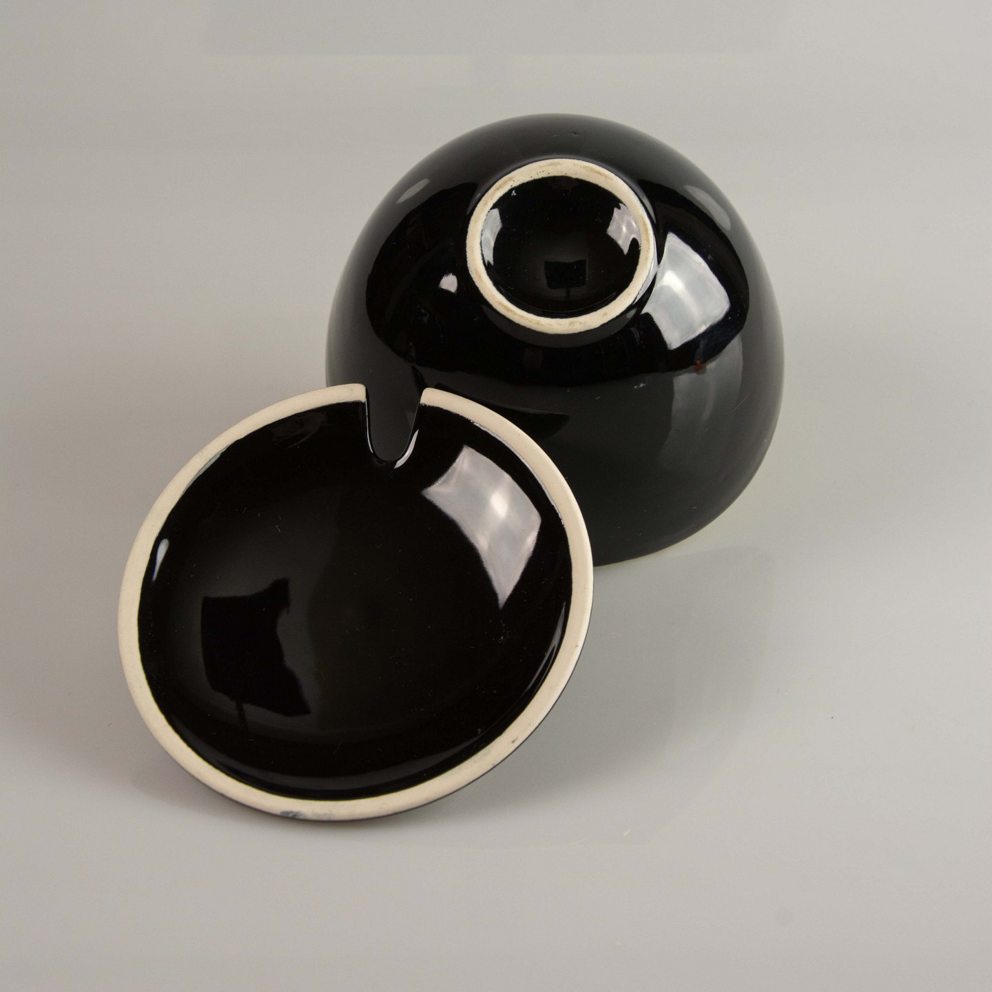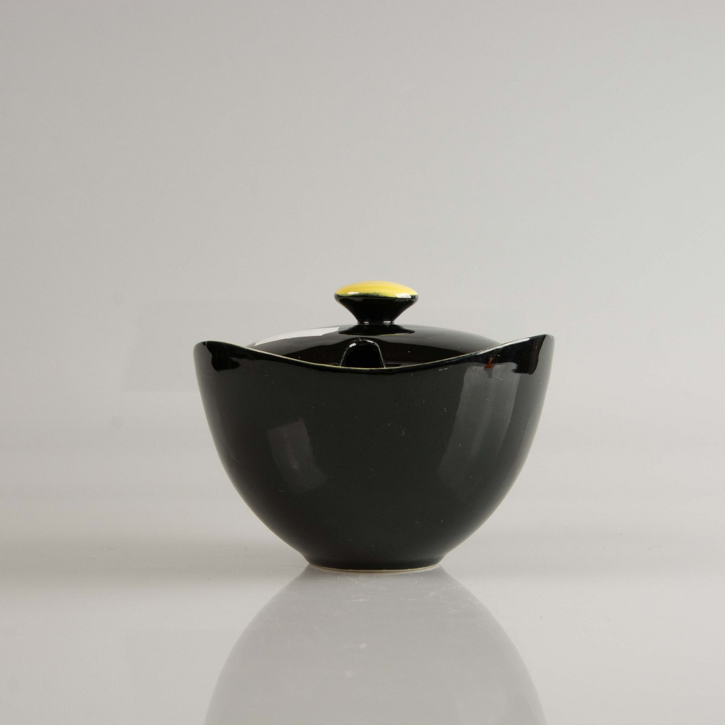 Marmeladeskål i fajance med let-bølget kant og låg fra stellet Congo