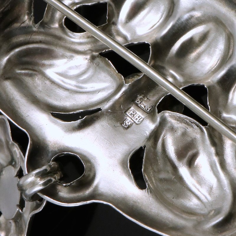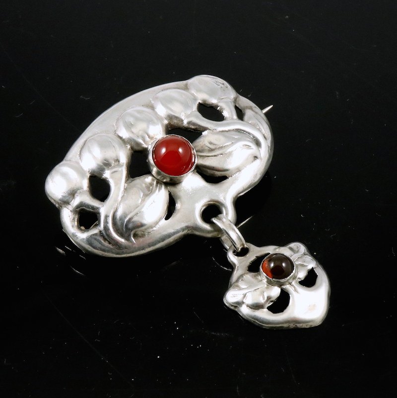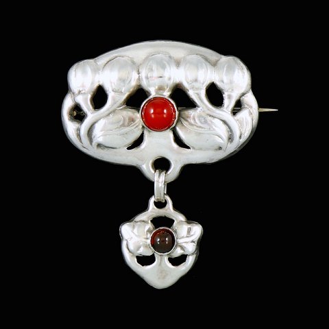 Bernhard Hertz. Skønvirke Broche i Sølv med Karneol og granat.