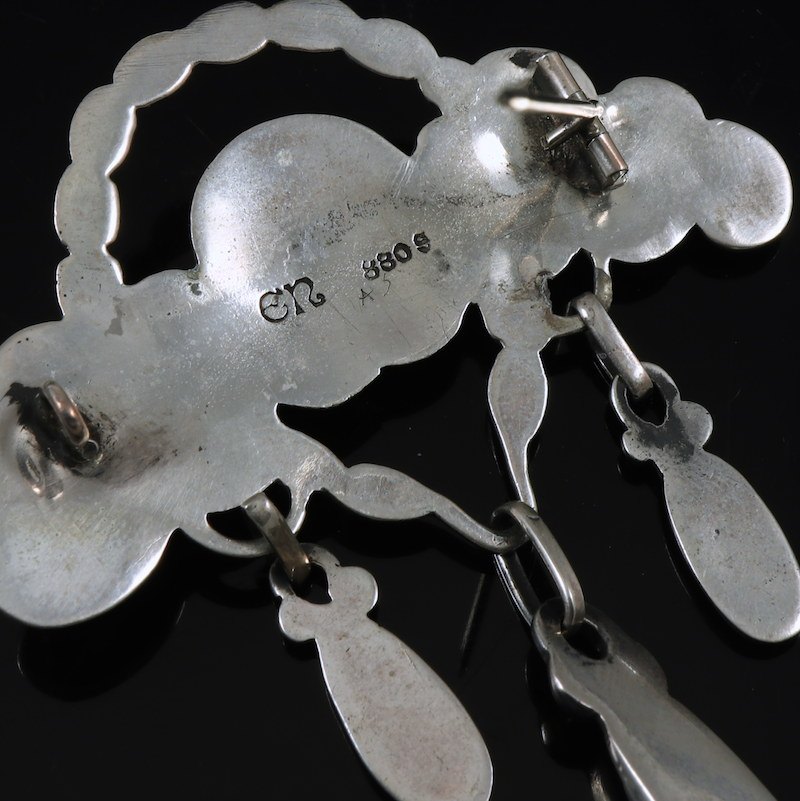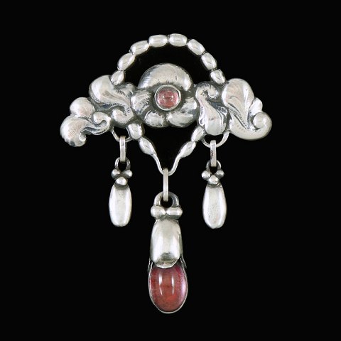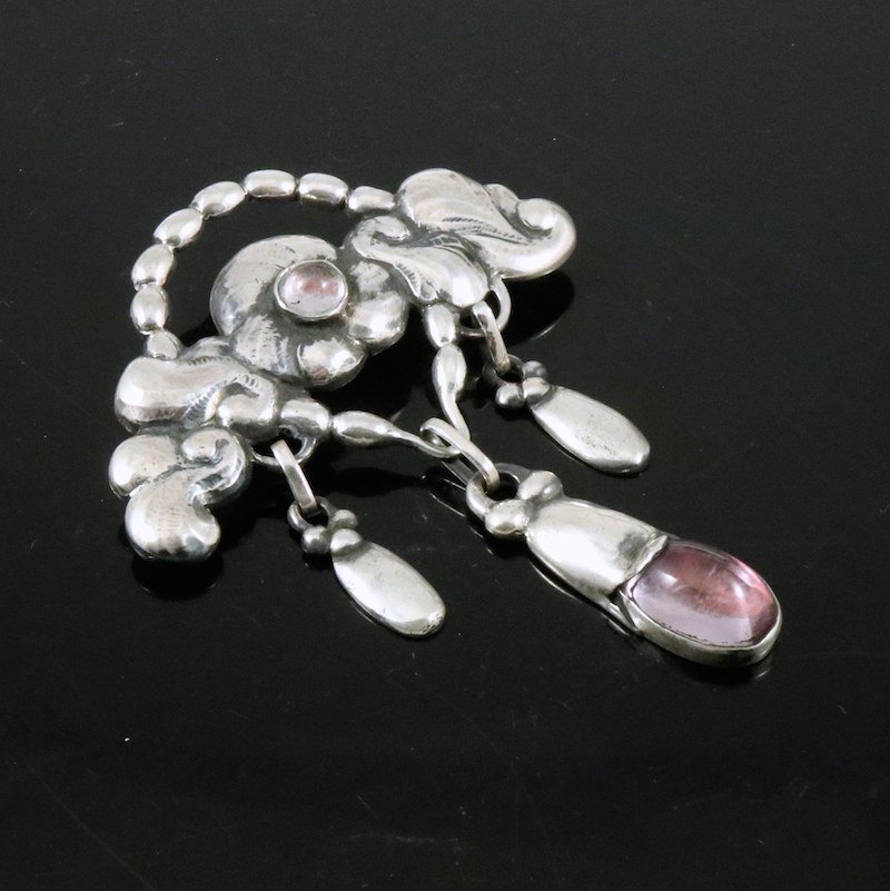 Evald Nielsen. Skønvirke Broche i Sølv med lila kvarts.
