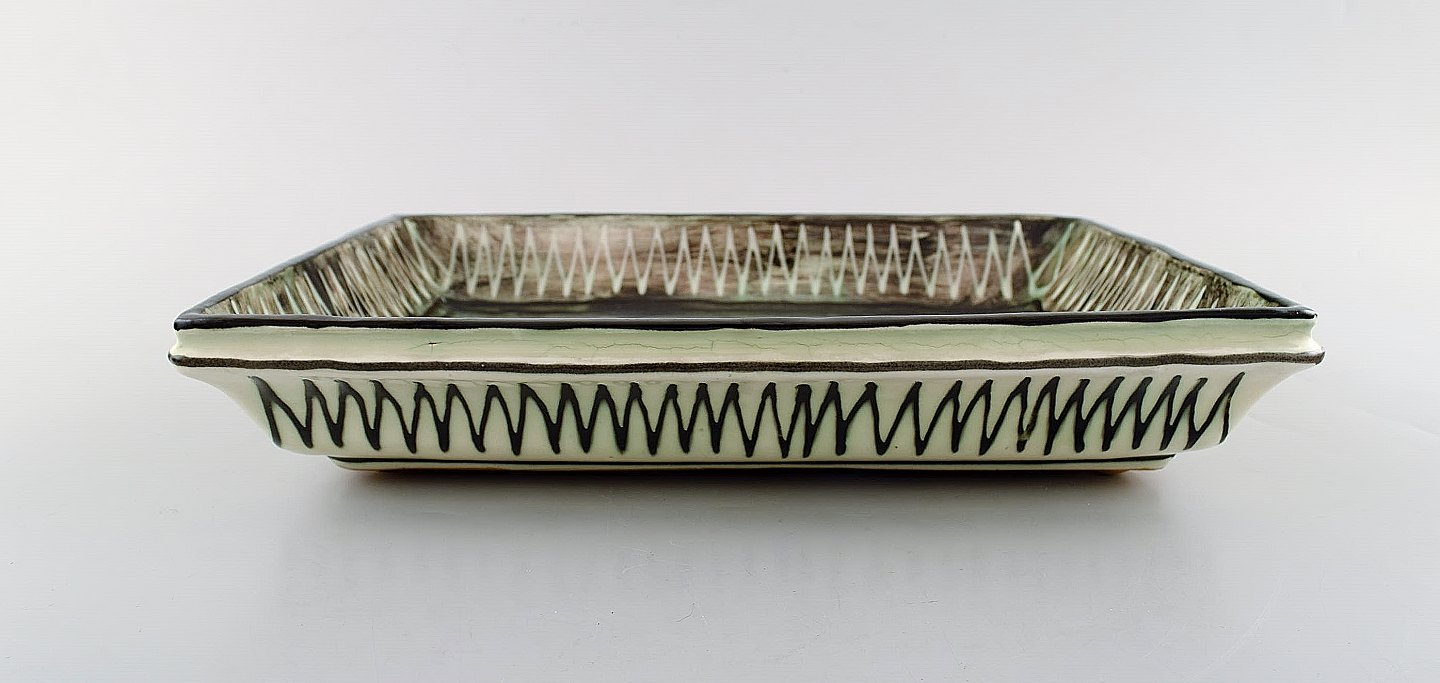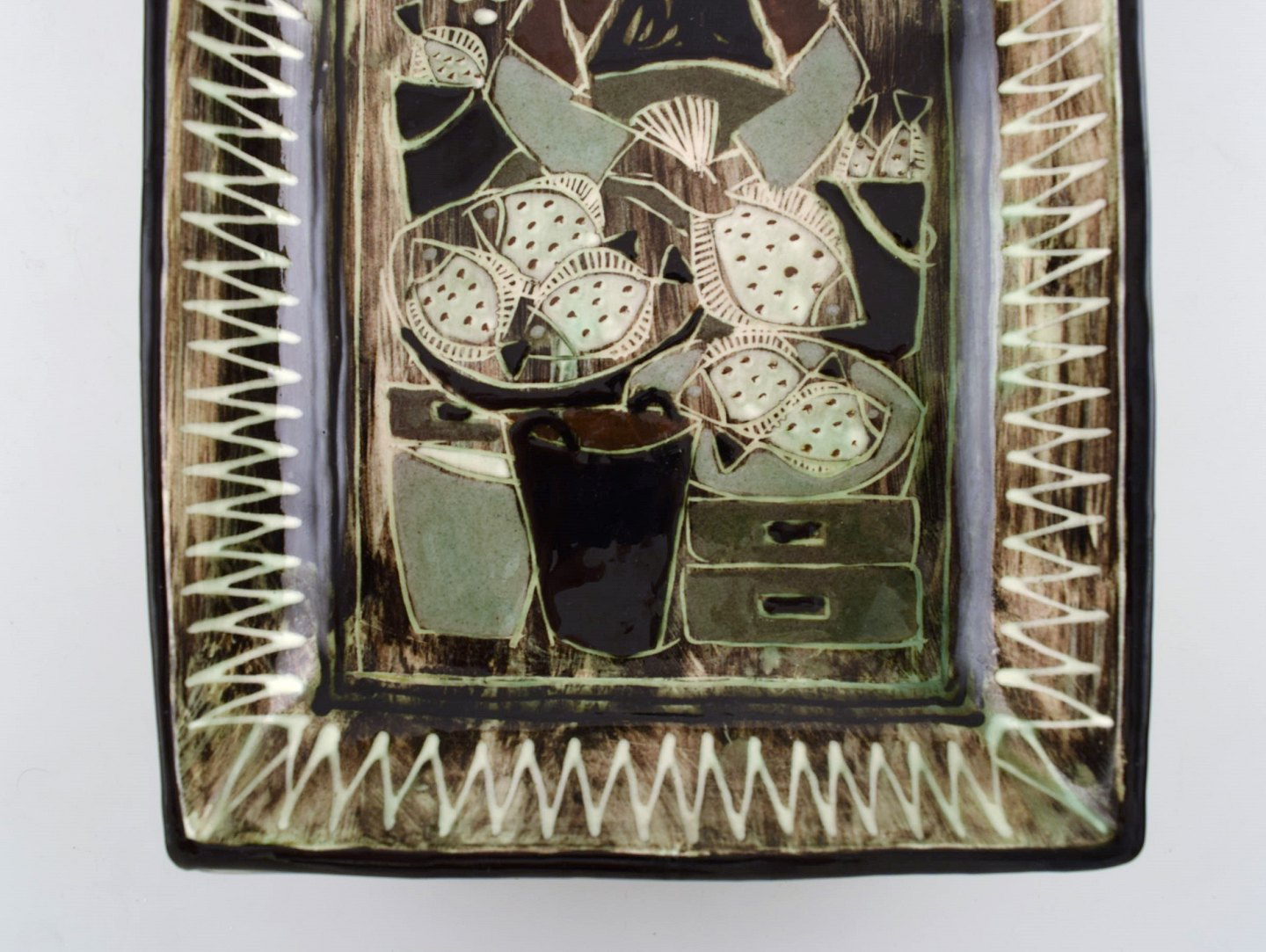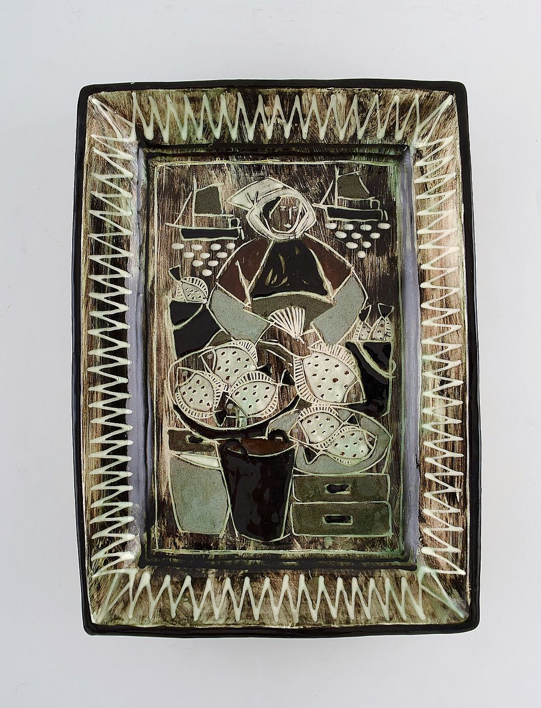 Astrid Tjalk for Kähler. Unika skål i glaseret keramik med motiv af fiskekone. 1960'erne.