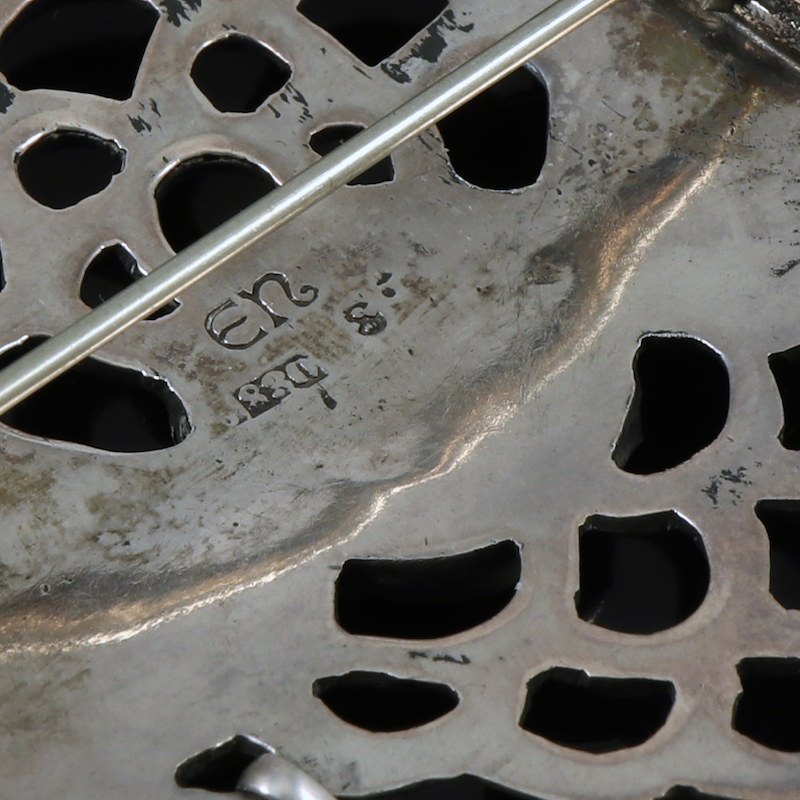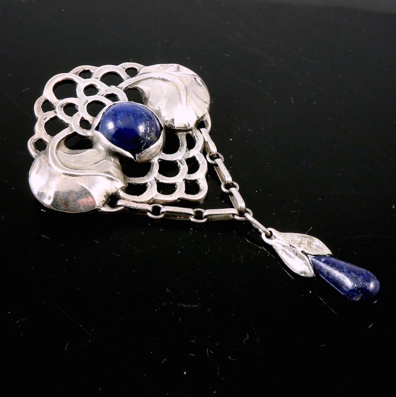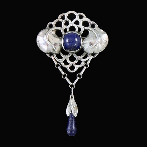 Evald Nielsen. Skønvirke Broche i Sølv med Lapis Lazuli.