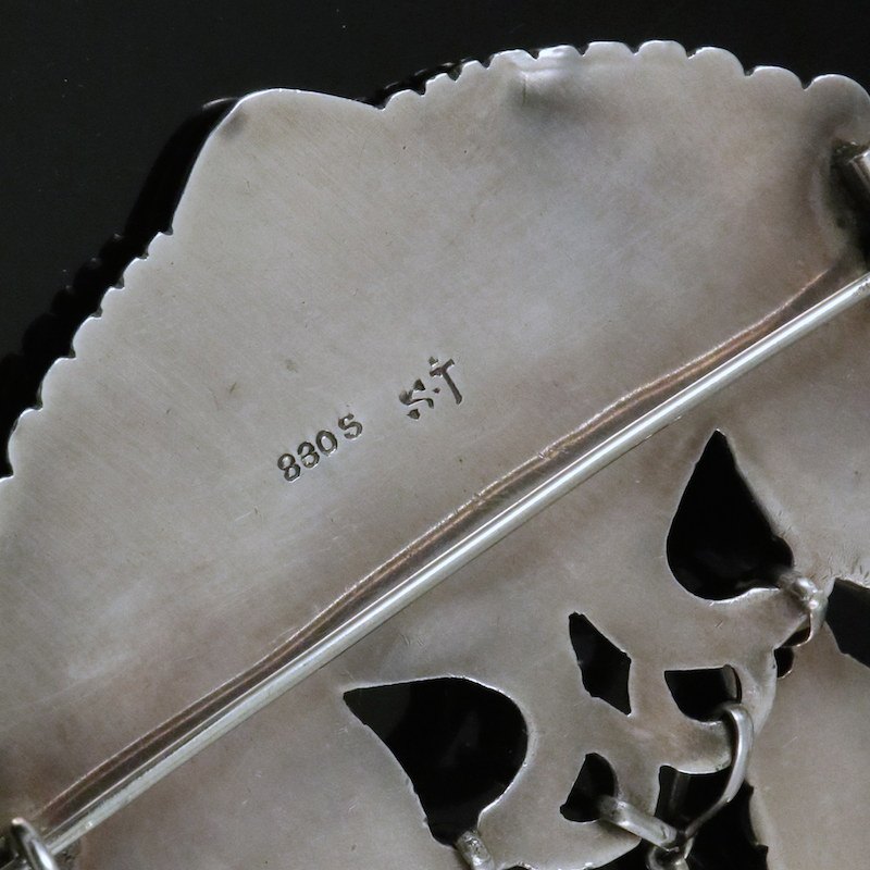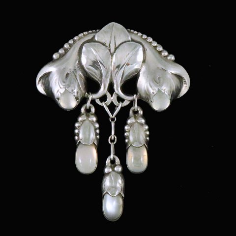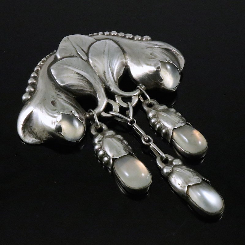 Evald Nielsen. Skønvirke Broche i Sølv med månesten.