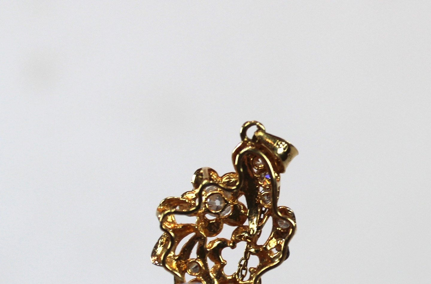 Pendant of 18 carat gold decorated with clear stones. The jewel is in great vintage condition.