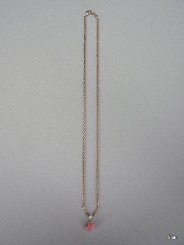 Sølvhalskæde 925 S. med Rosa Glasperle L: 44 cm.