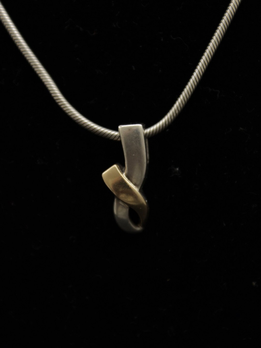Sterling silver necklace 39.5 cm. with pendant 1.8 x 0.8 cm in sterling and with gold Nr. 386016