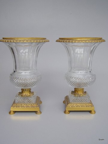 Franske Prydvaser Slutningen af 1800 tallet i Krystal og Bronze H: 32,5 cm.