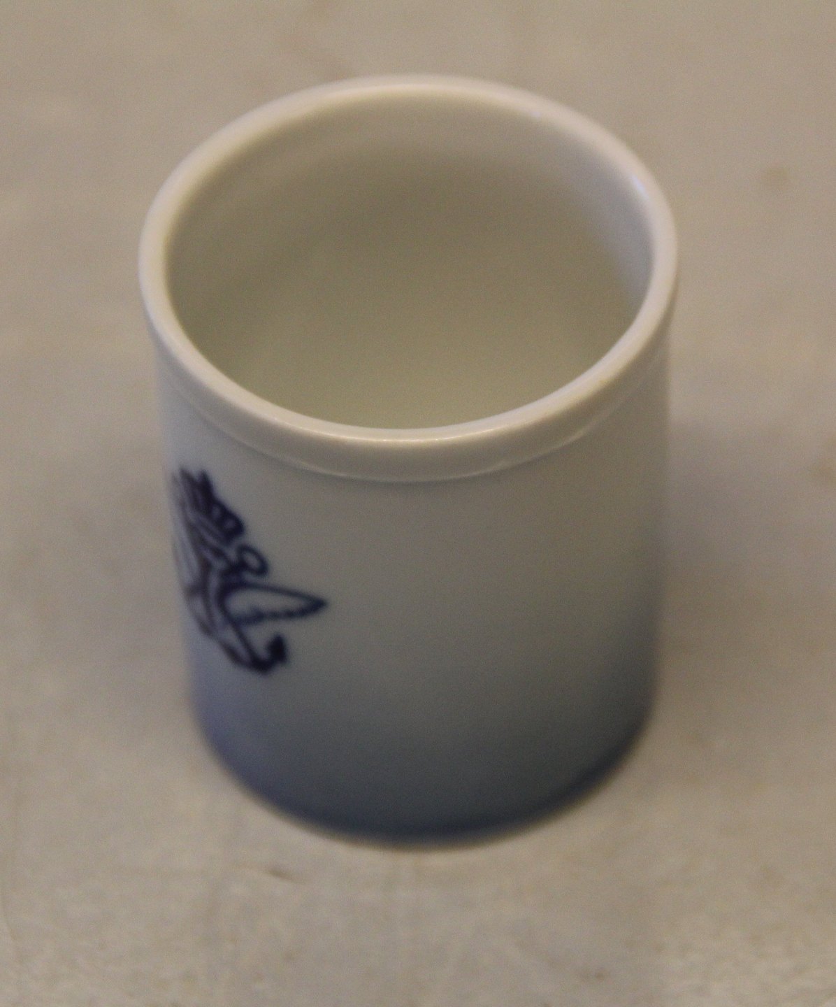 862 Lille vase - bæger tandstikbæger rund 5.5 cm med logo Flåden Bing & Grøndahl Blå tone