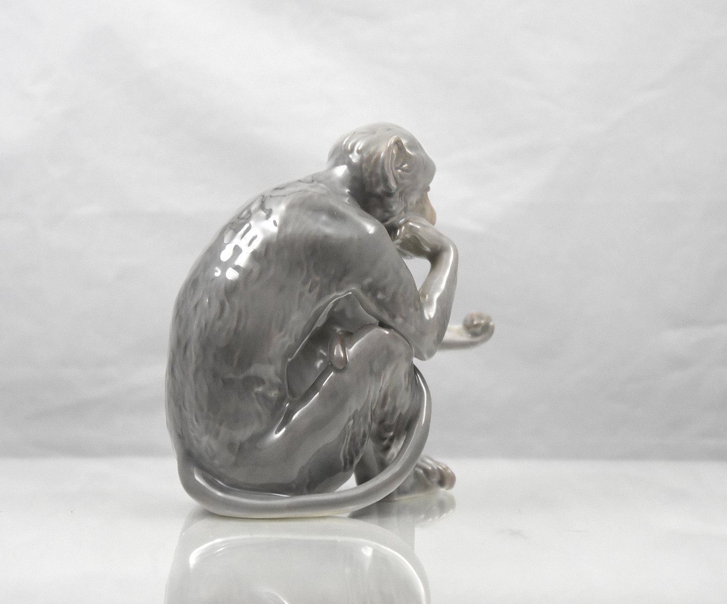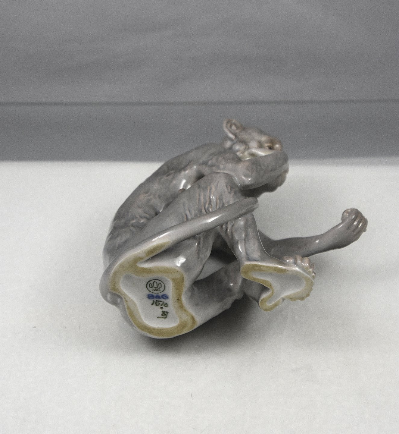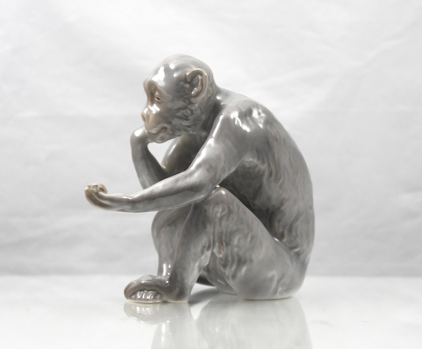 Figur i porcelæn med motiv af siddende abe med skildpadde i hånden nr. 1510