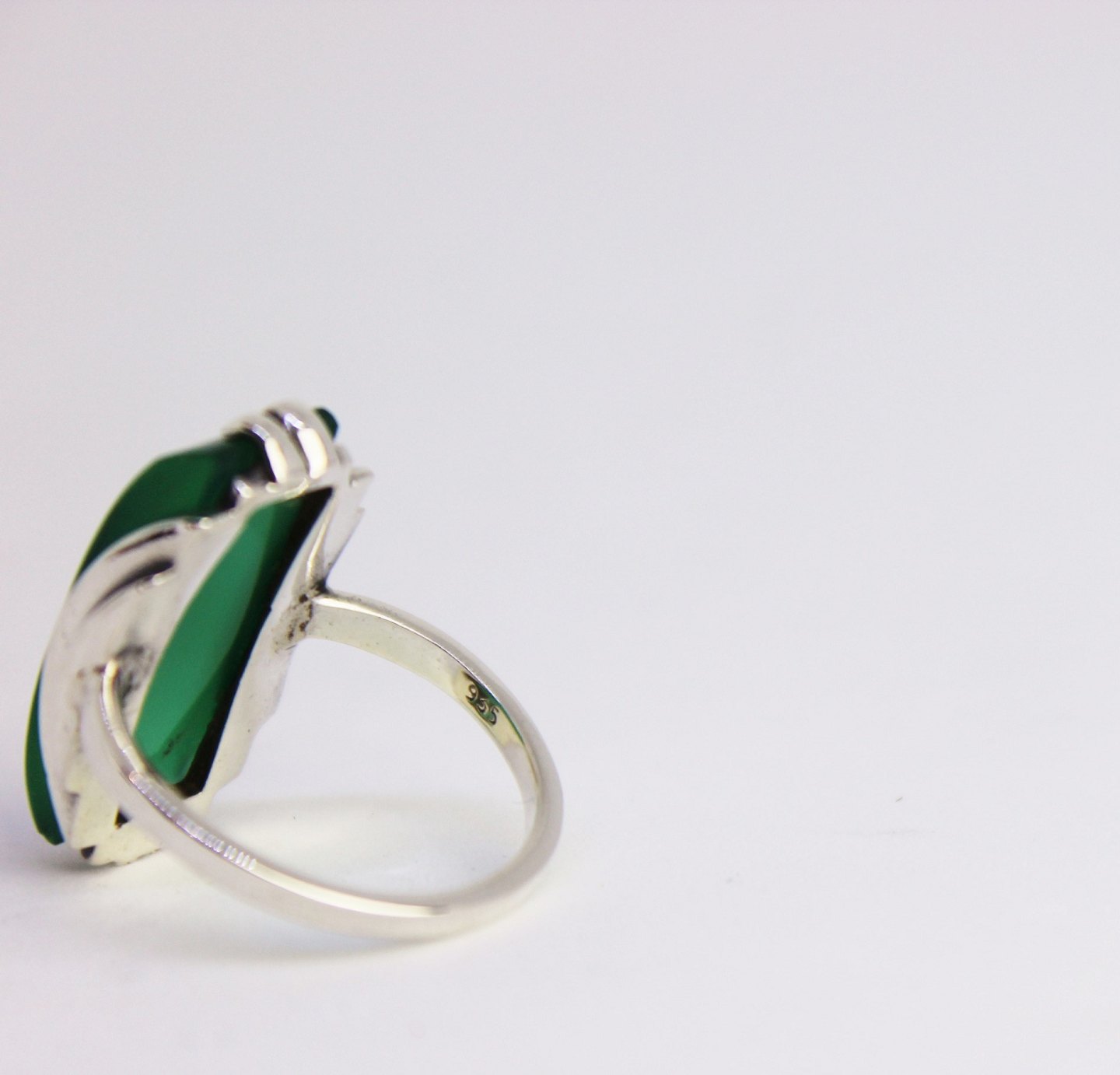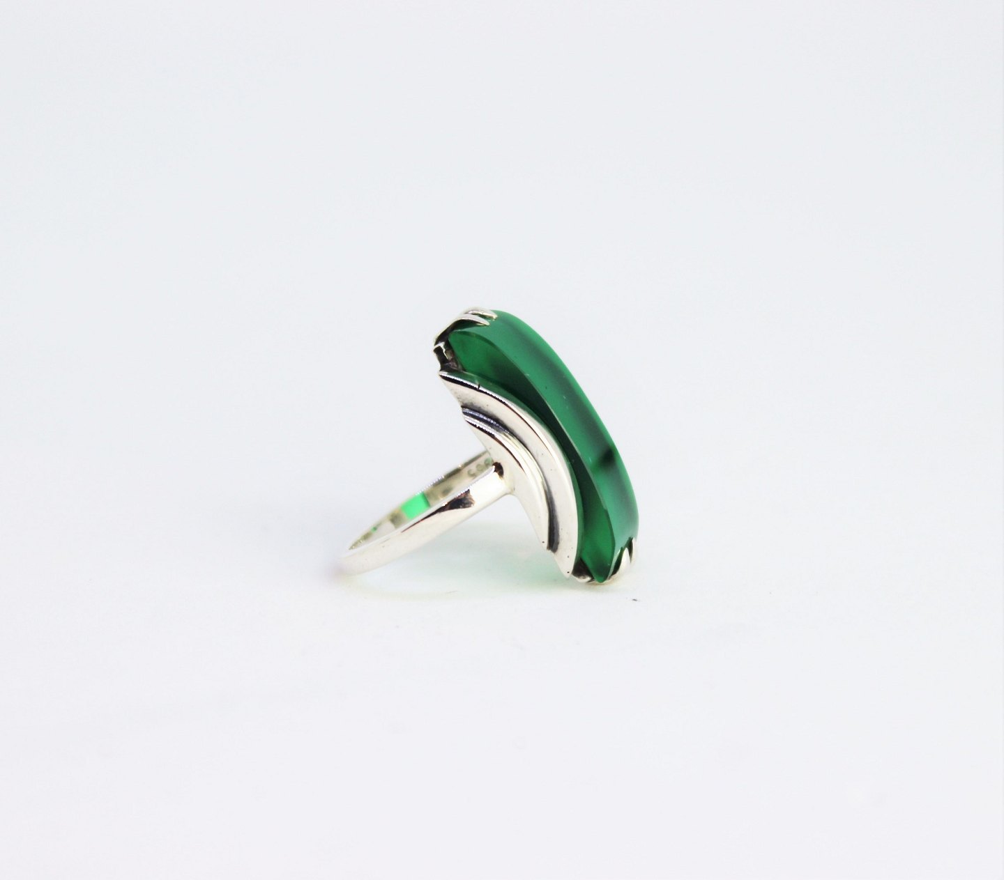 Ring af 925 sterling sølv dekoreret med grøn jade sten.