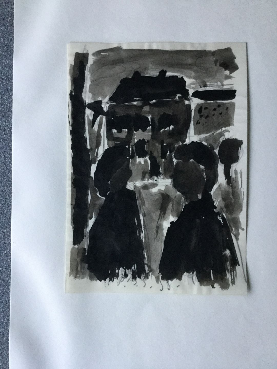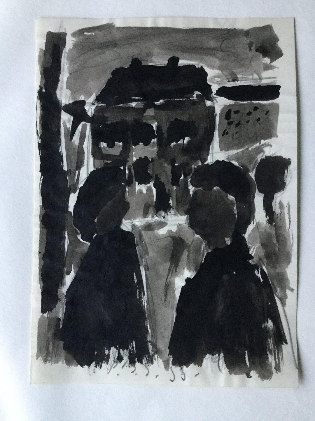 Tegning af Peder Brøndum Sørensen- 2 personer ved vindue 1955.