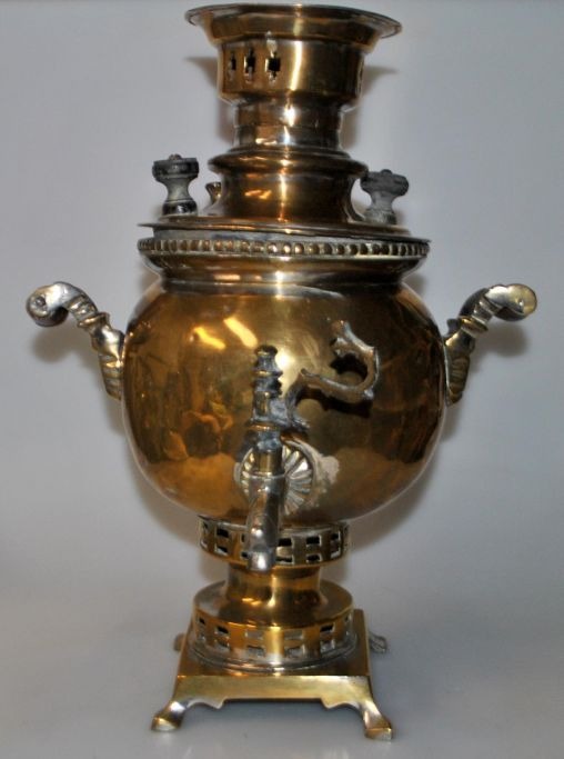 The maskine i Messing, 19. årh. Antagelig Rusland. Utydelig stemplet. H.: 33,5 cm.