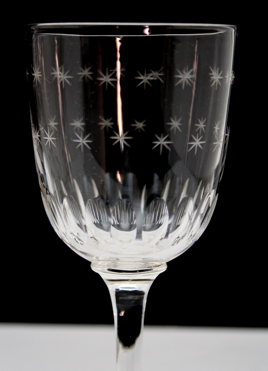 Holmegaard/Val st. Lambert, Christian den 9 krystal vinglas fra 1927 krystalkataloget. Kumme har oliveslibning i bund og 2 rækker stjerneslibninger. Højde 14,5 cm. Diameter 6,3 cm. Pris: 175 kr. stk. Lager: 10