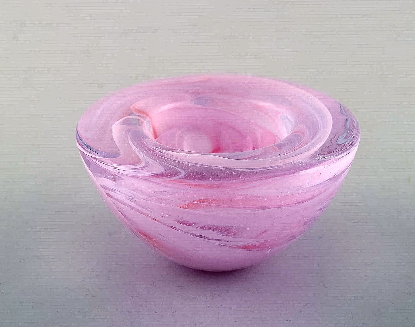 Kosta Boda, Sweden. Light holder in pink and clear art glass. Late 20th century.
