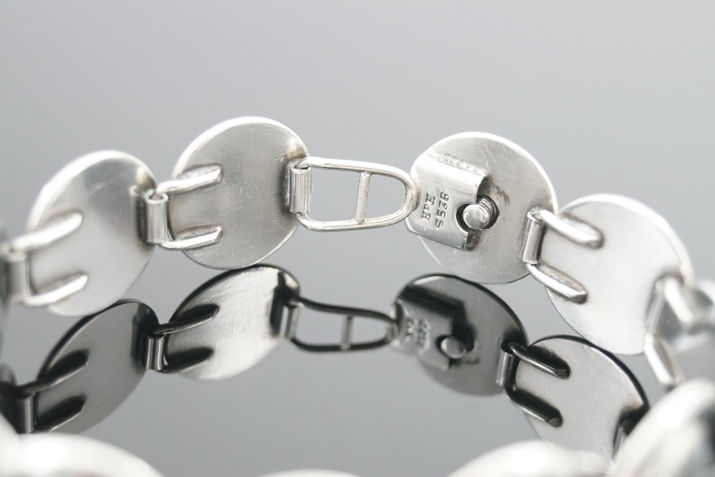 Hans Hansen; Armbånd af sterling sølv. Design med runde led, lukkes med skrue. L. 19,2 cm. B. 1,8 cm.