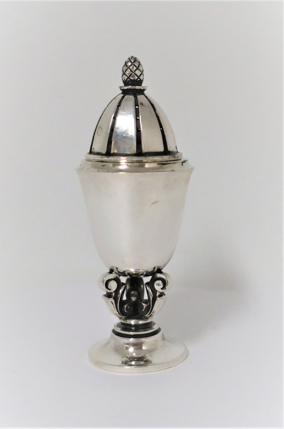 Georg Jensen. Peberbøsse. Konge. Design Johan Rohde. Model 741. Højde 9 cm. Produceret 1945 - 1977.