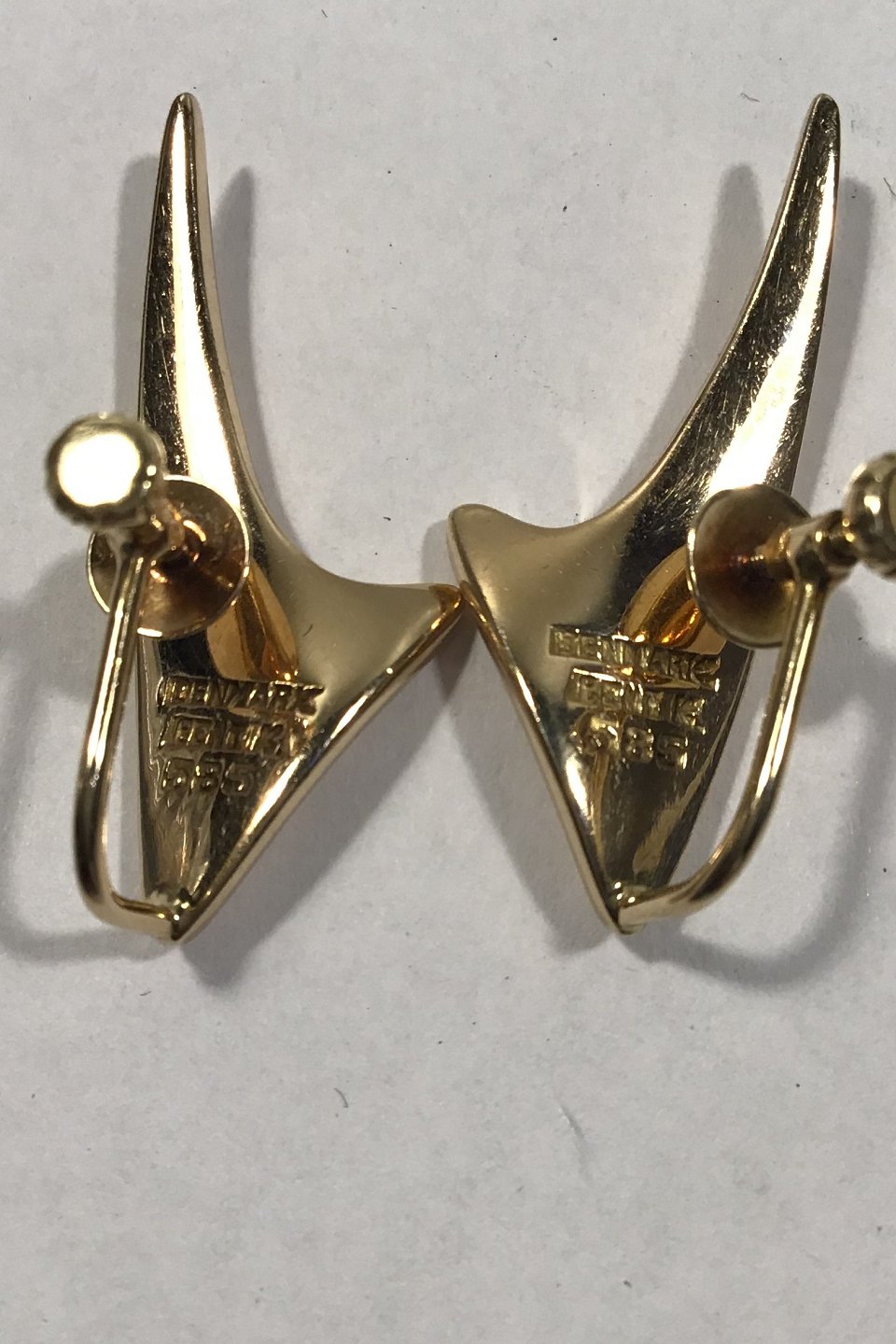 Bent Knudsen, 14K Guld Øreskruer Måler 1.3 cm x 3.3 cm Vægt samlet 9.5 gr