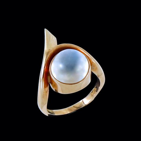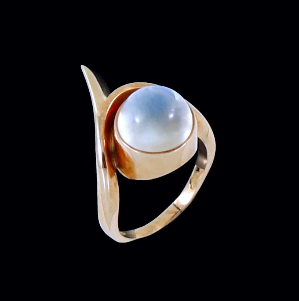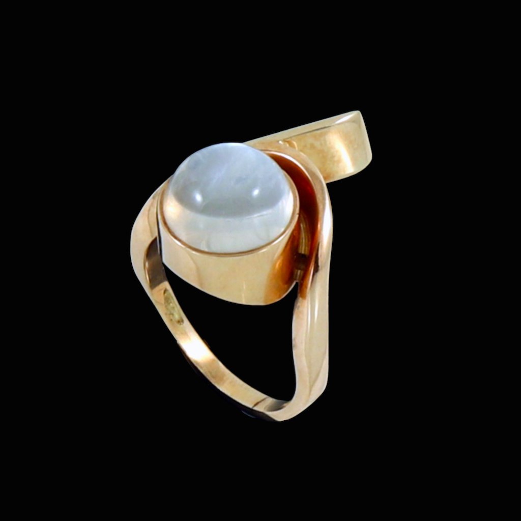 Danish 14k Gold Ring with Moonstone. 1960s